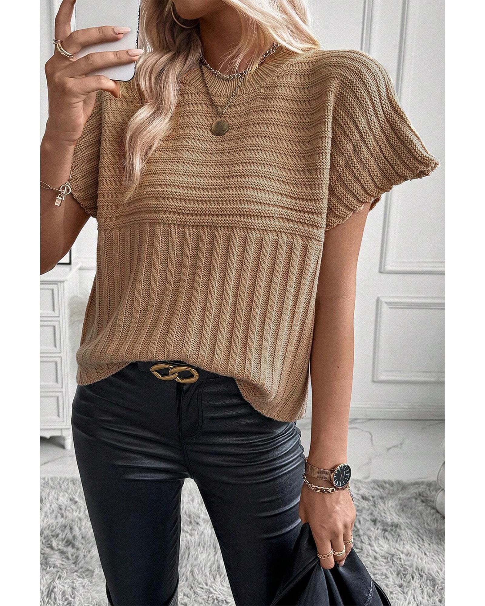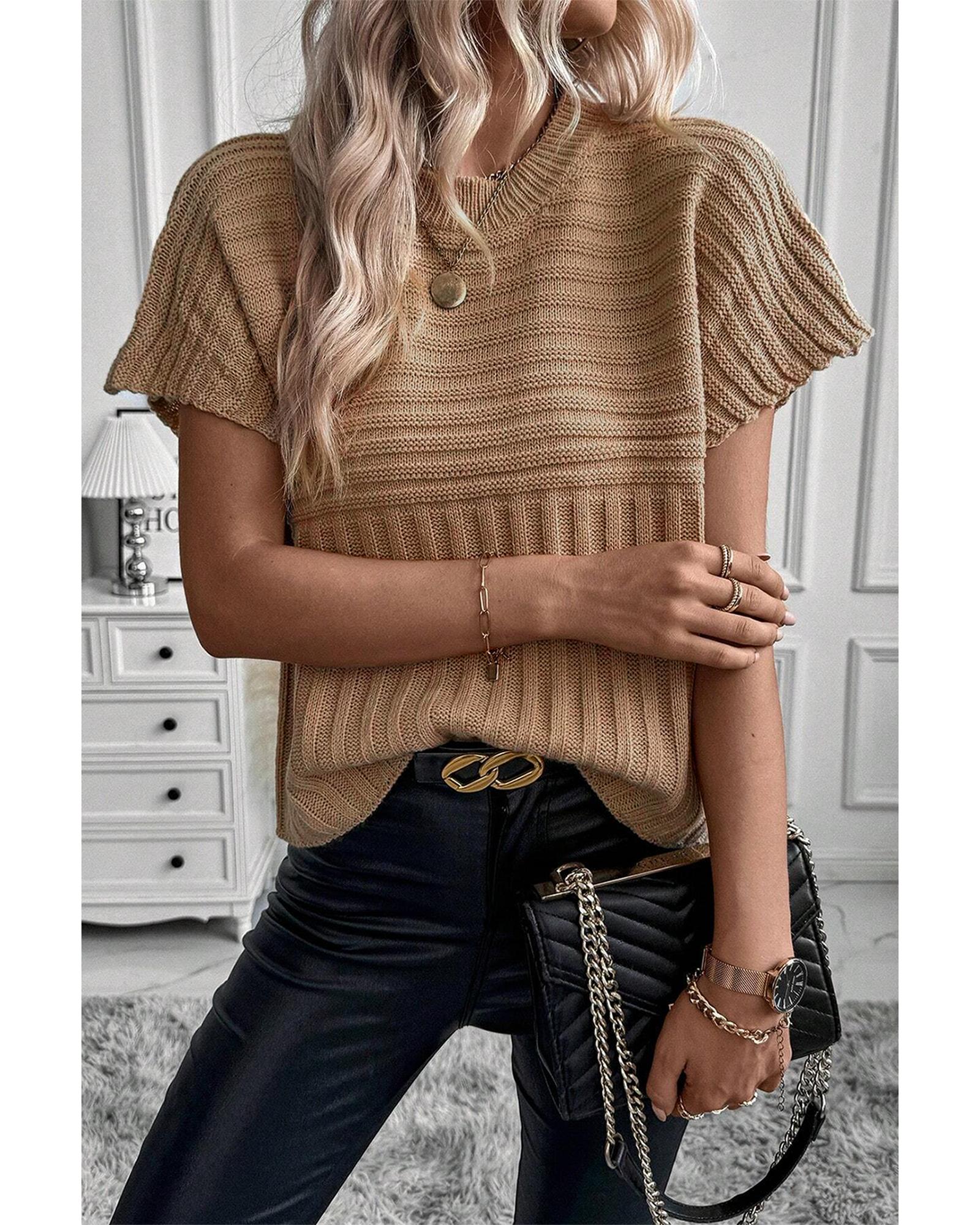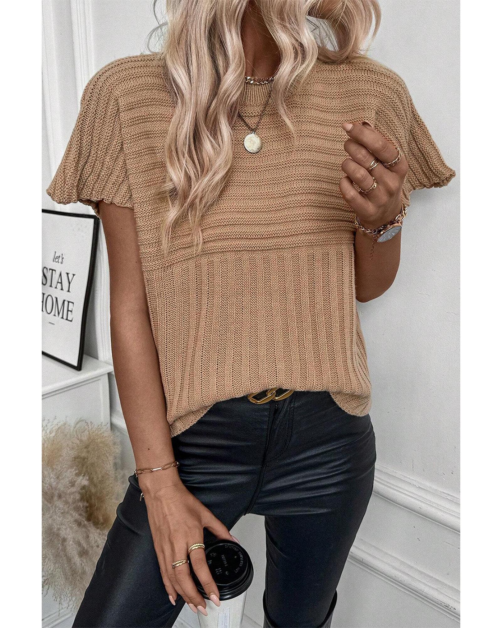 Light French Beige Rib Knitted Wide Sleeve Sweater T Shirt – XL