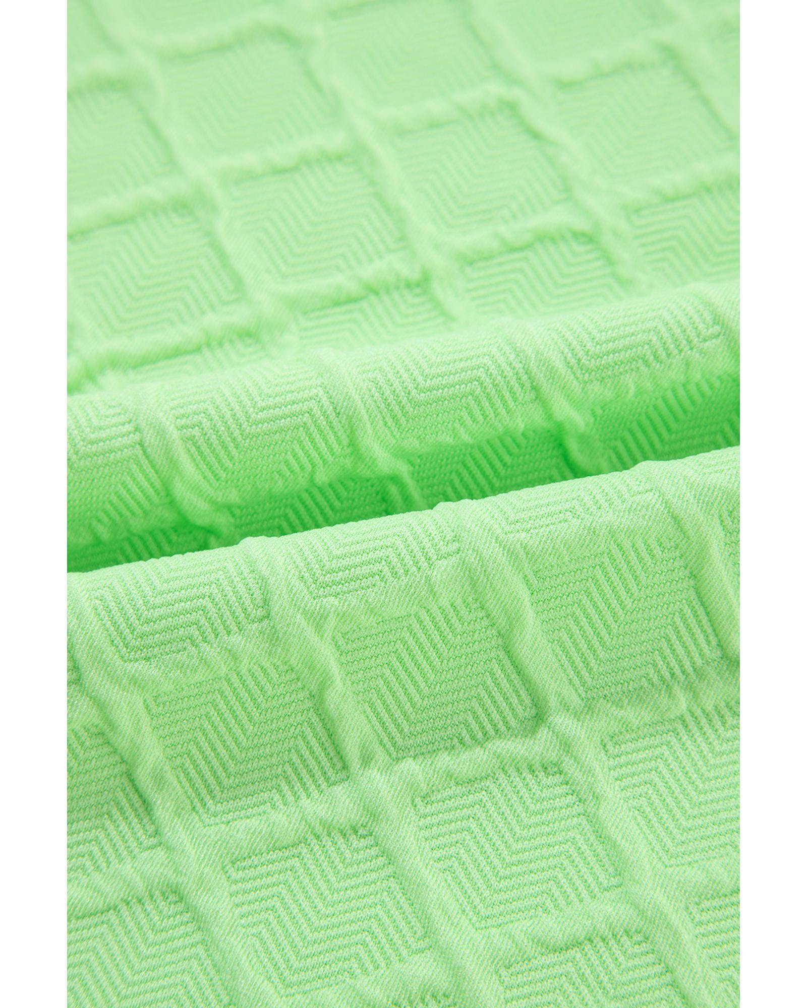 Light Green Checkered Textured Tee and Drawstring Shorts – L