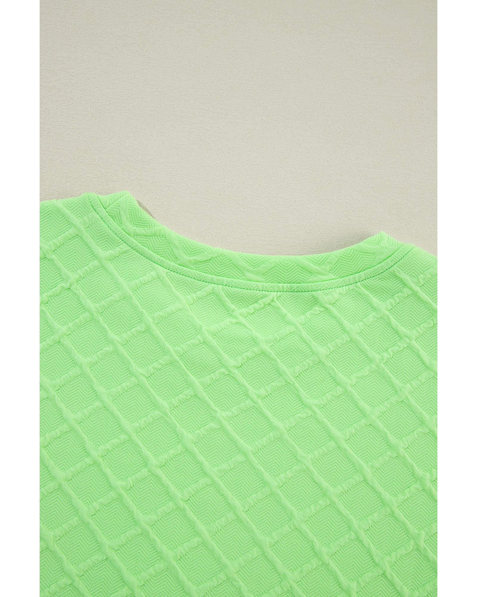 Light Green Checkered Textured Tee and Drawstring Shorts – M