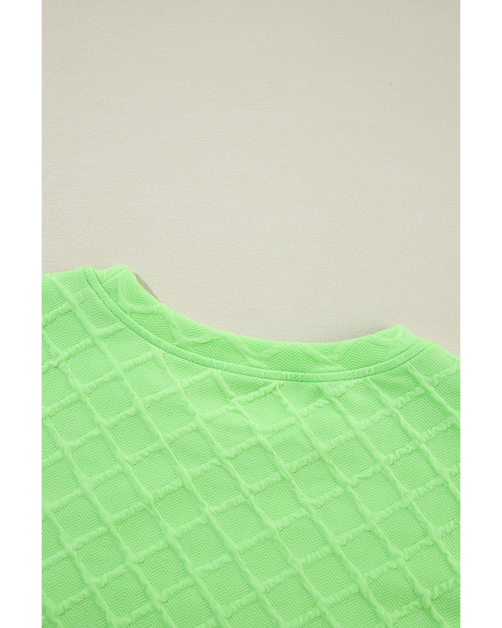 Light Green Checkered Textured Tee and Drawstring Shorts – XL