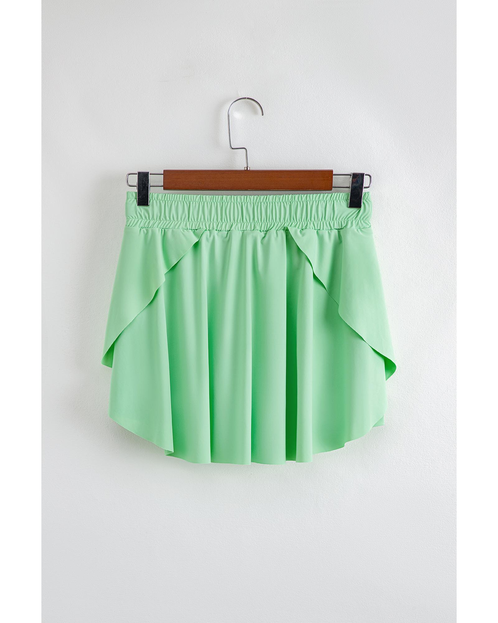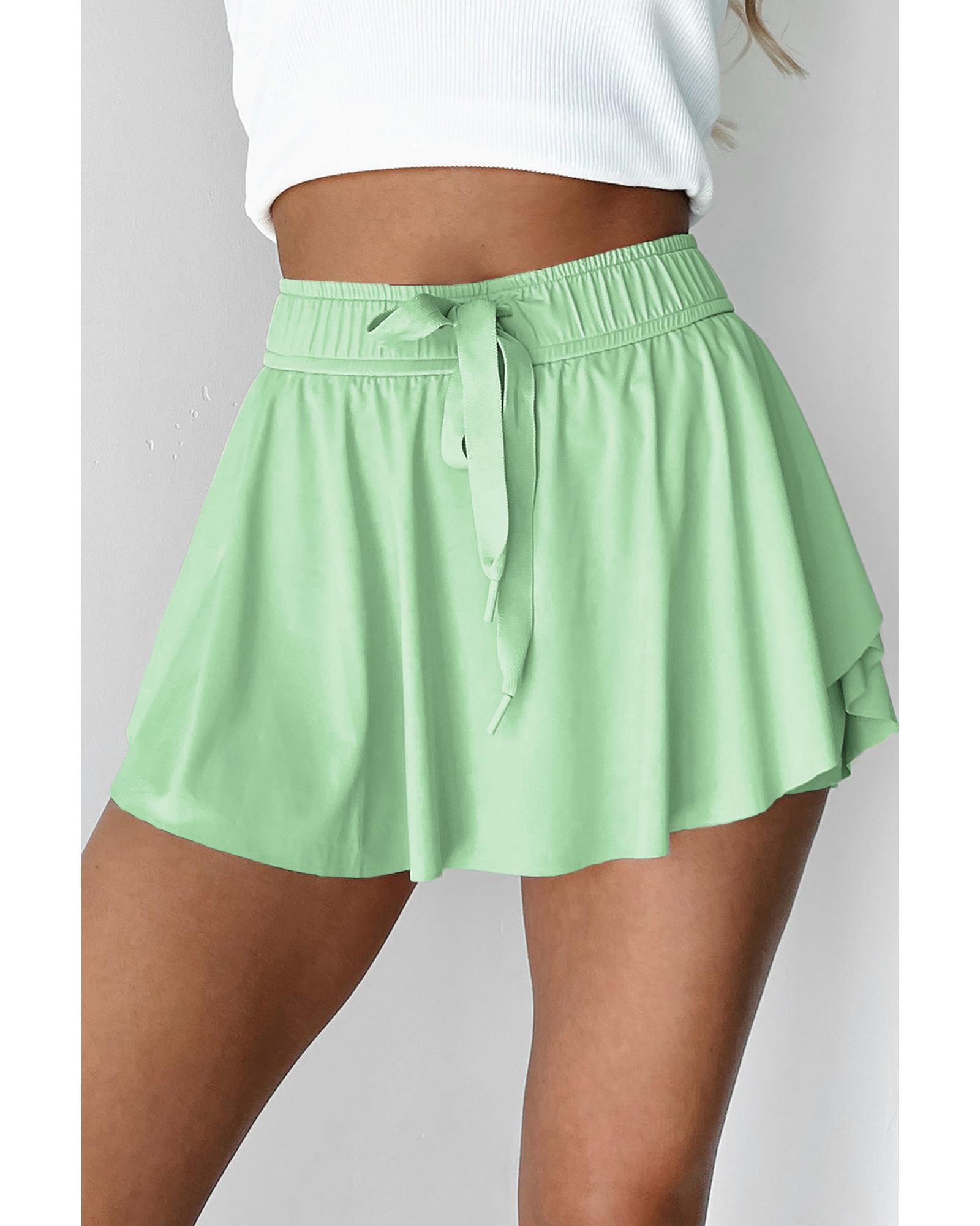 Light Green Drawstring High Waist Lined Tennis Skorts – L