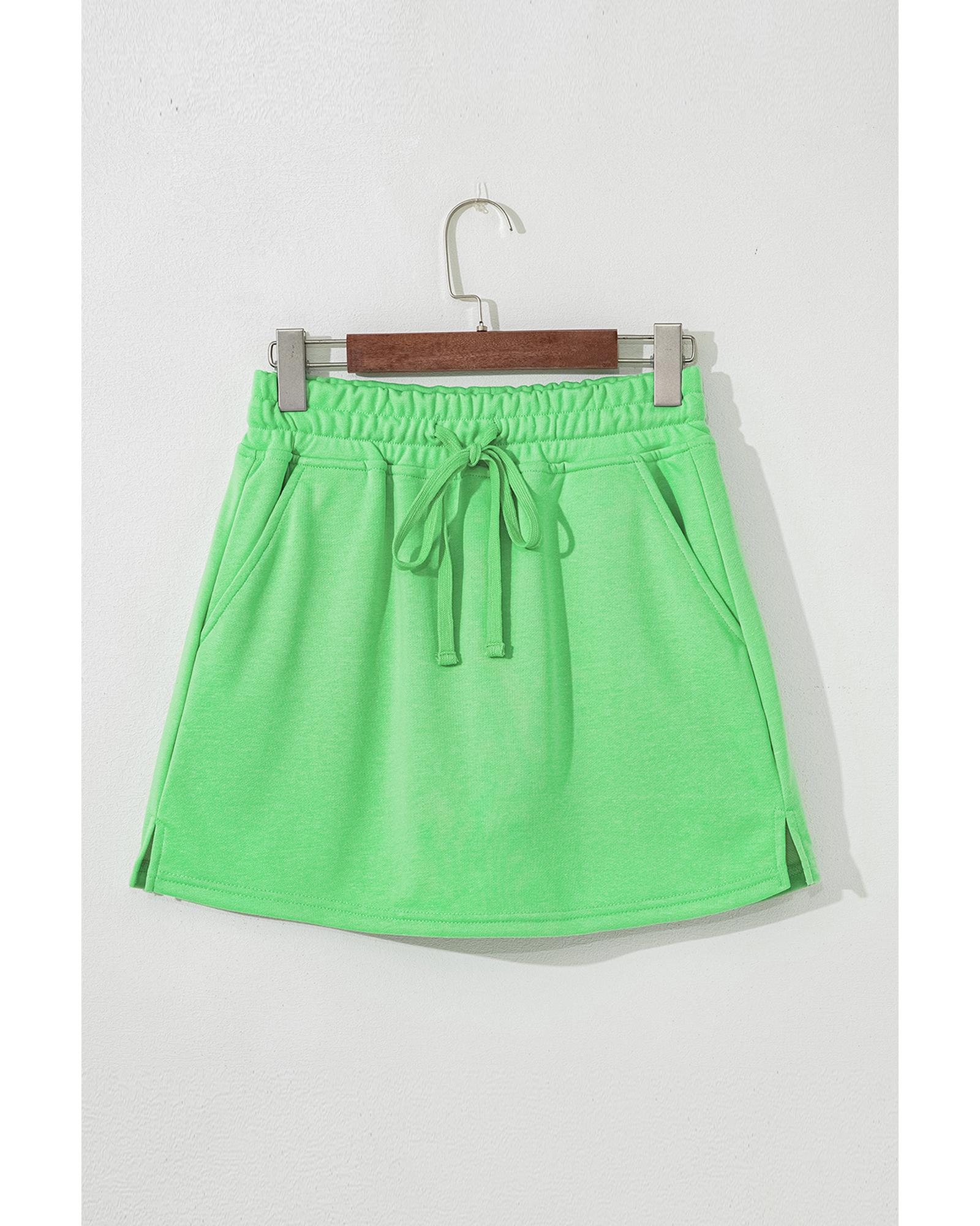 Light Green French Terry Drawstring Mini Skort with Pockets – L