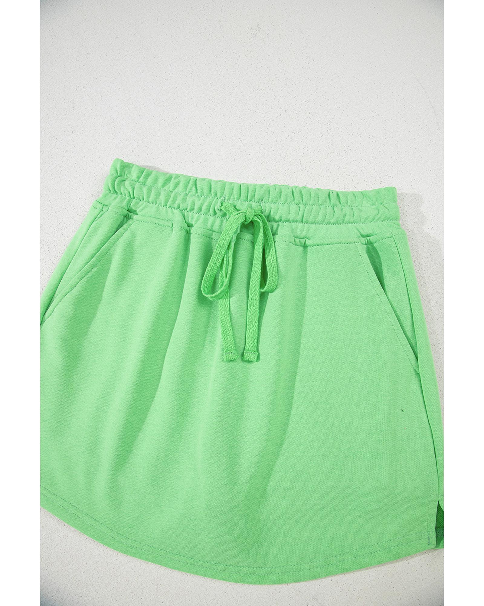 Light Green French Terry Drawstring Mini Skort with Pockets - XL