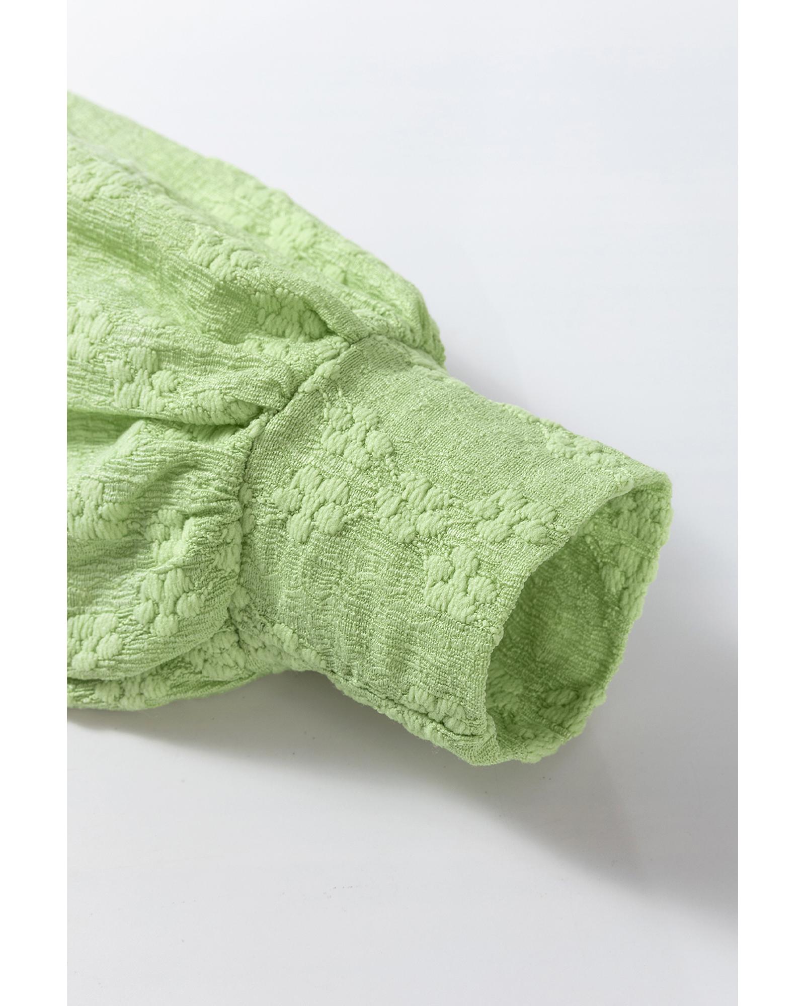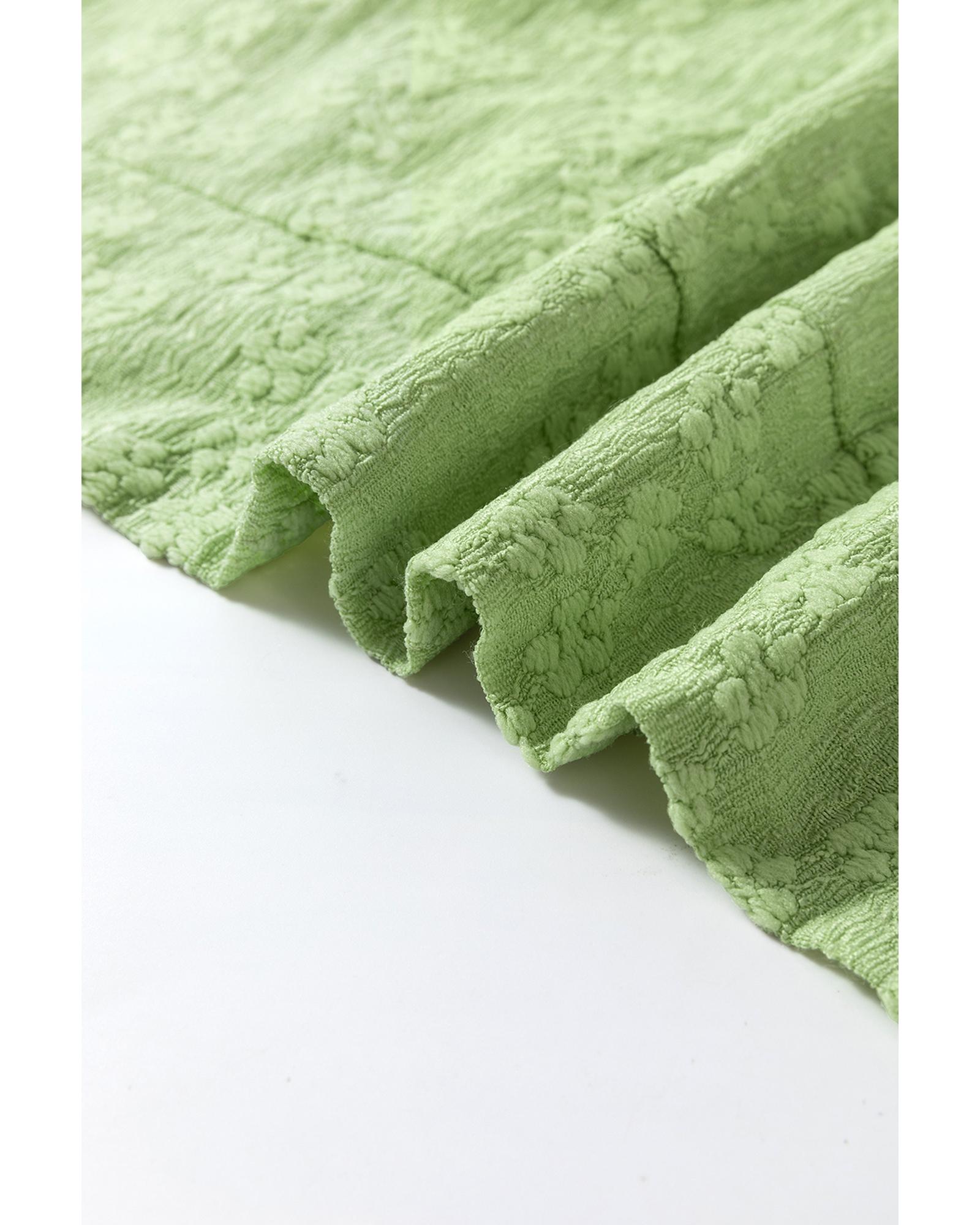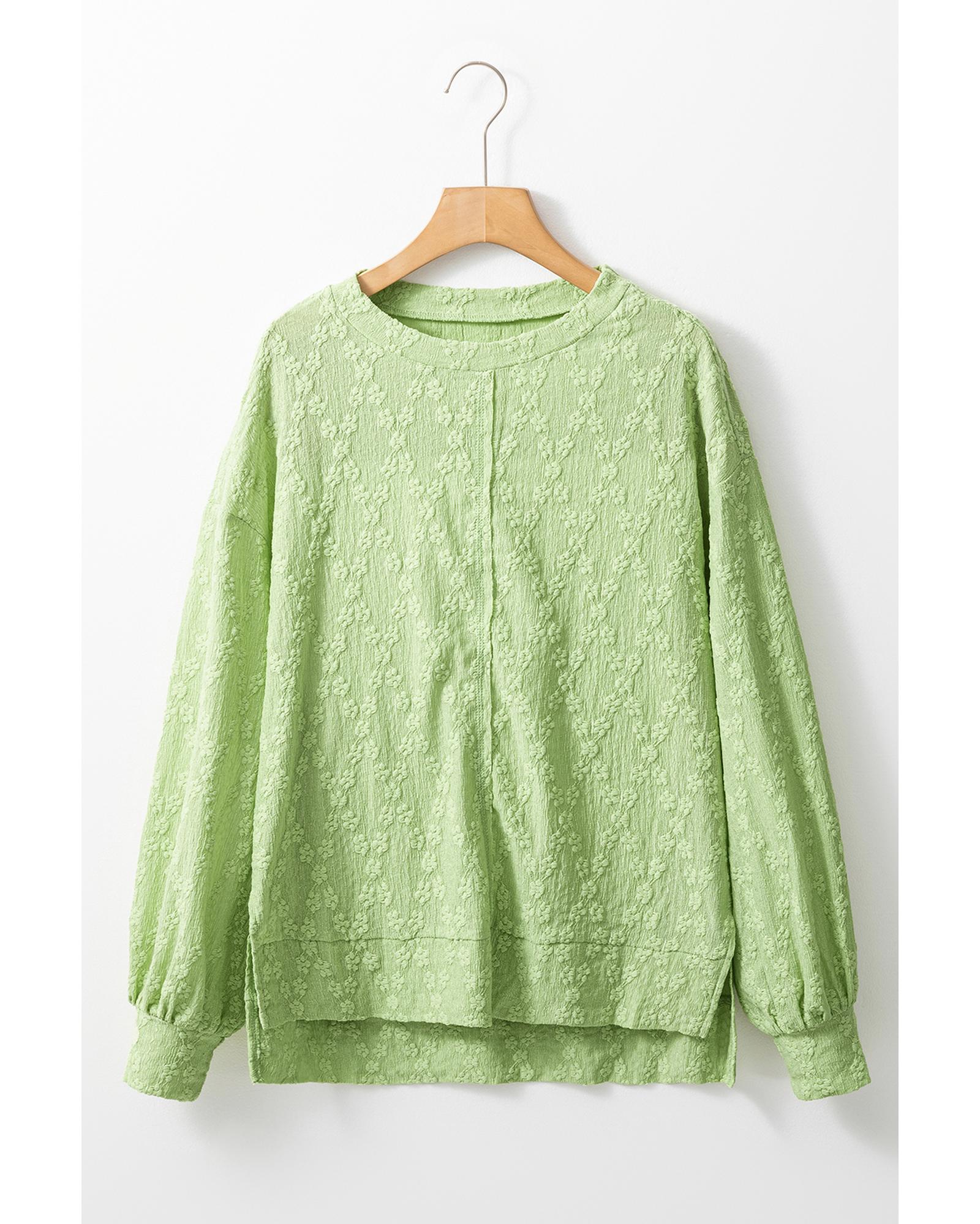 Light Green Solid Color Textured Side Split Crew Neck Blouse – XL