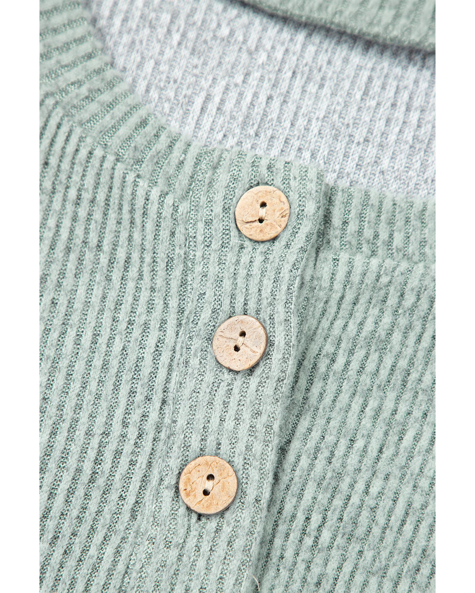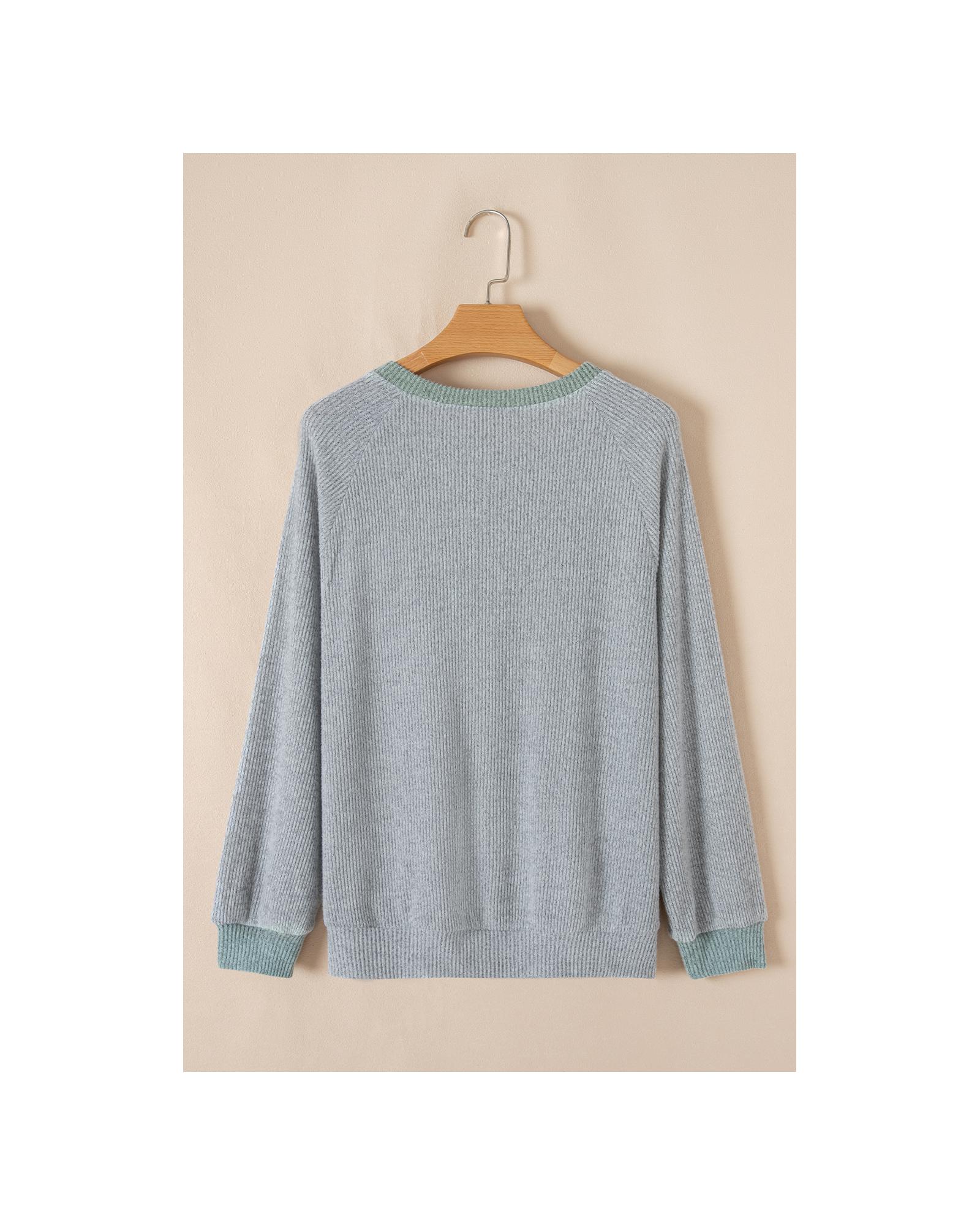 Light Grey Color Contrast Ribbed Loose Fit Long Sleeve Top – L