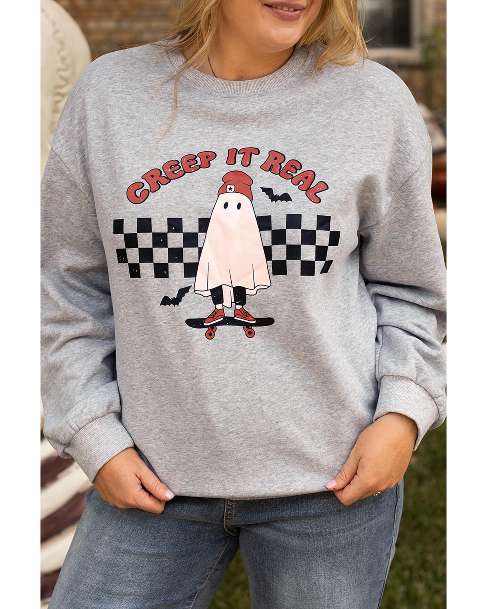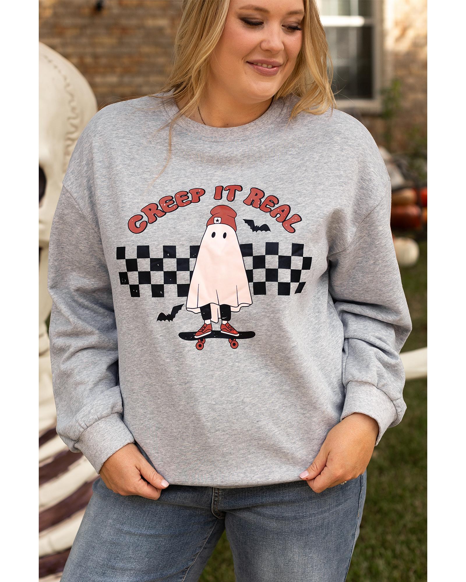 Light Grey Creep It Real Ghost Print Plus Size Sweatshirt – 1X