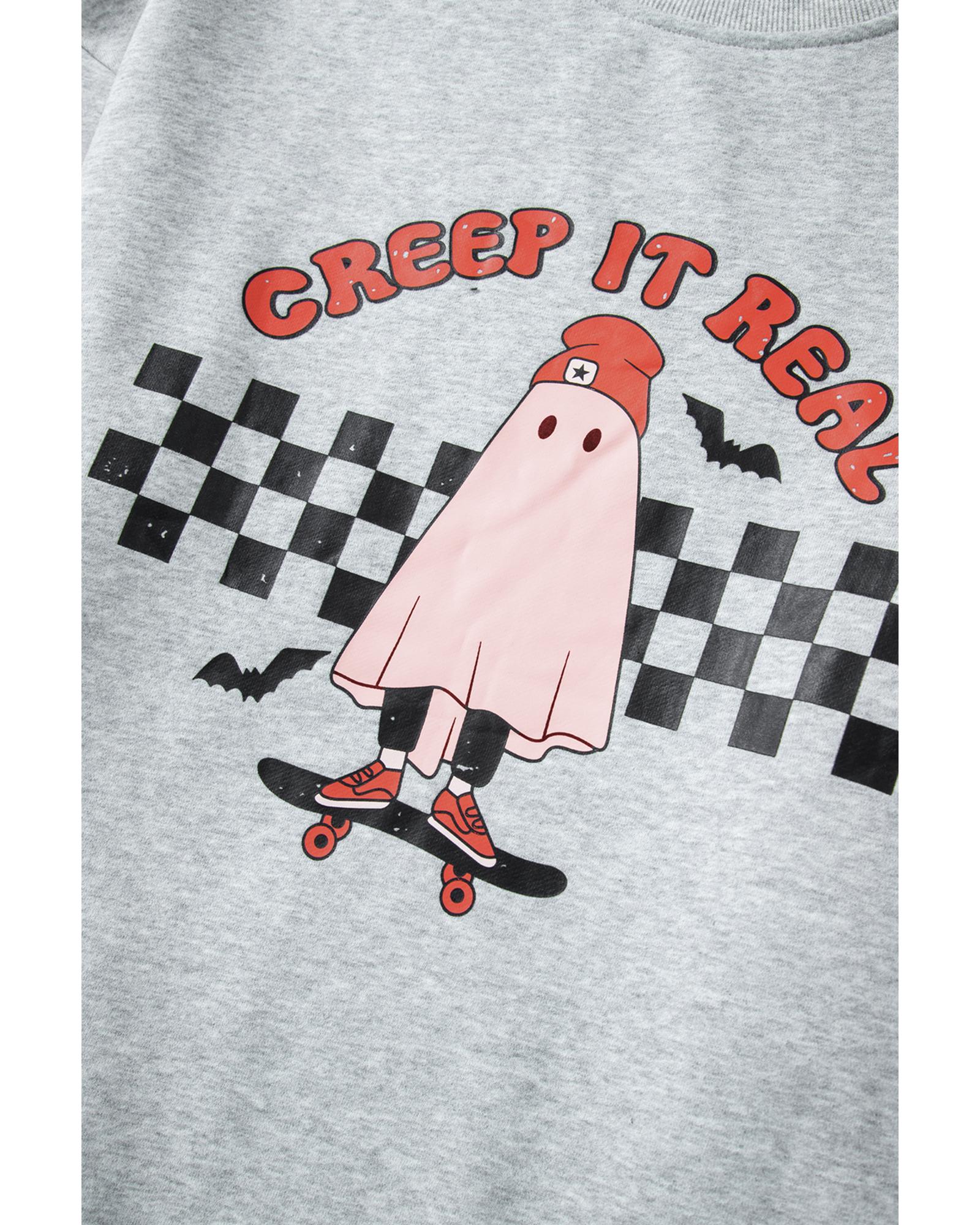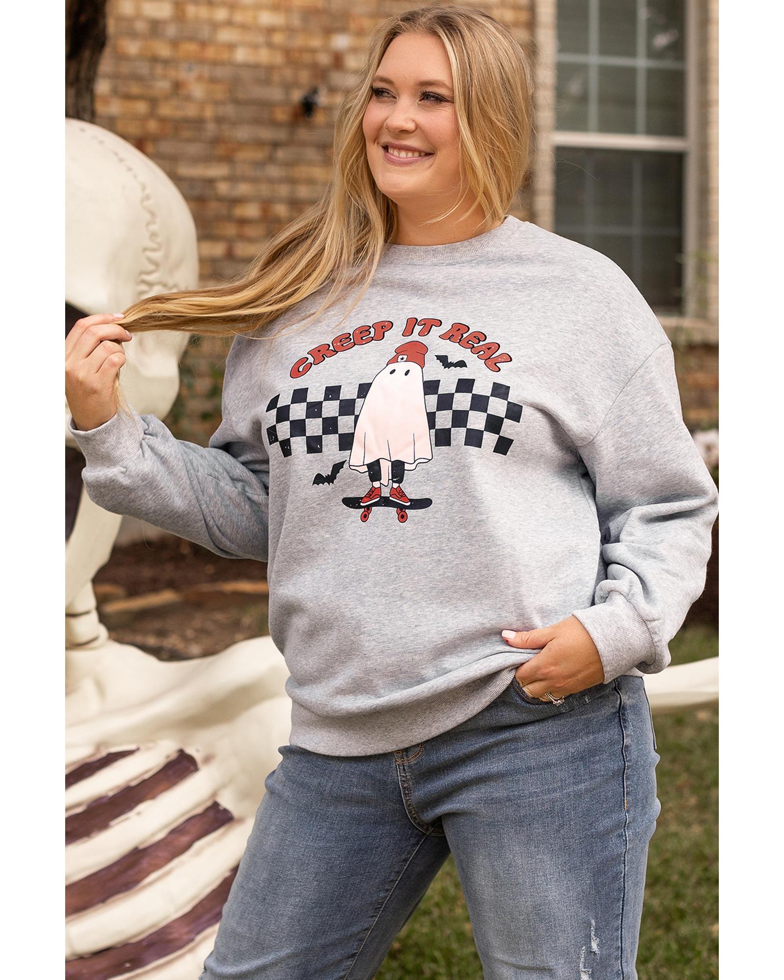 Light Grey Creep It Real Ghost Print Plus Size Sweatshirt – 2X