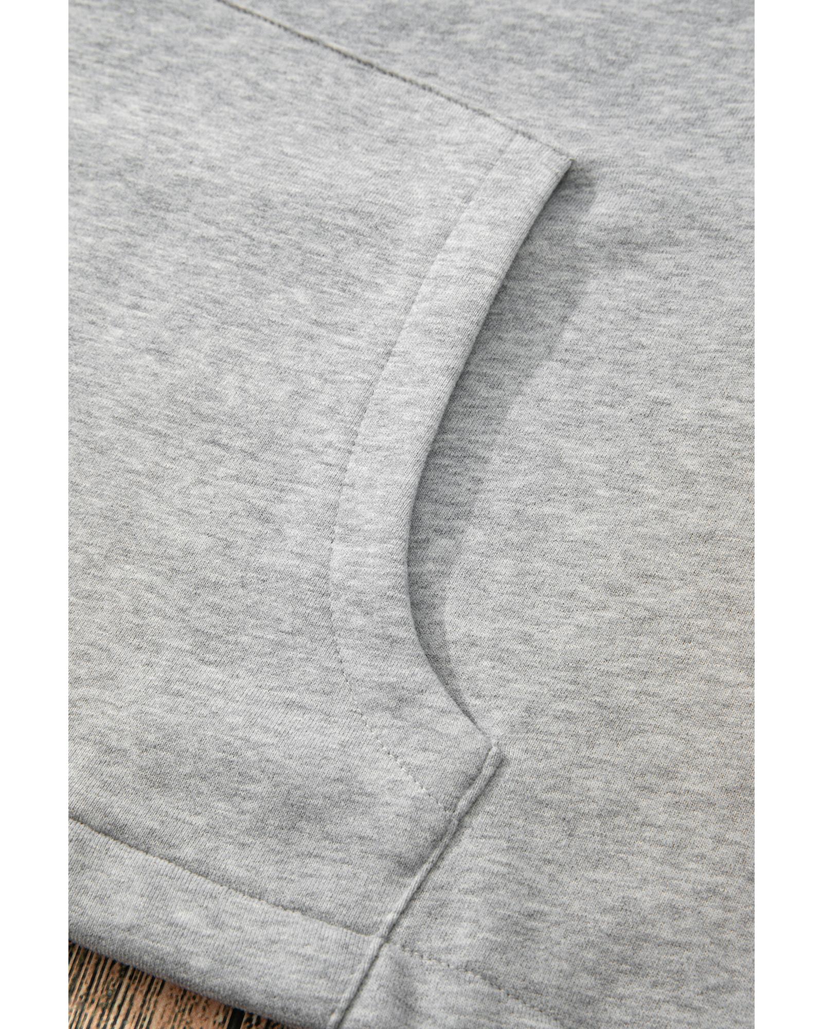 Light Grey Fleece Lined Half Zipper Kangaroo Pockets Loose Hoodie – L