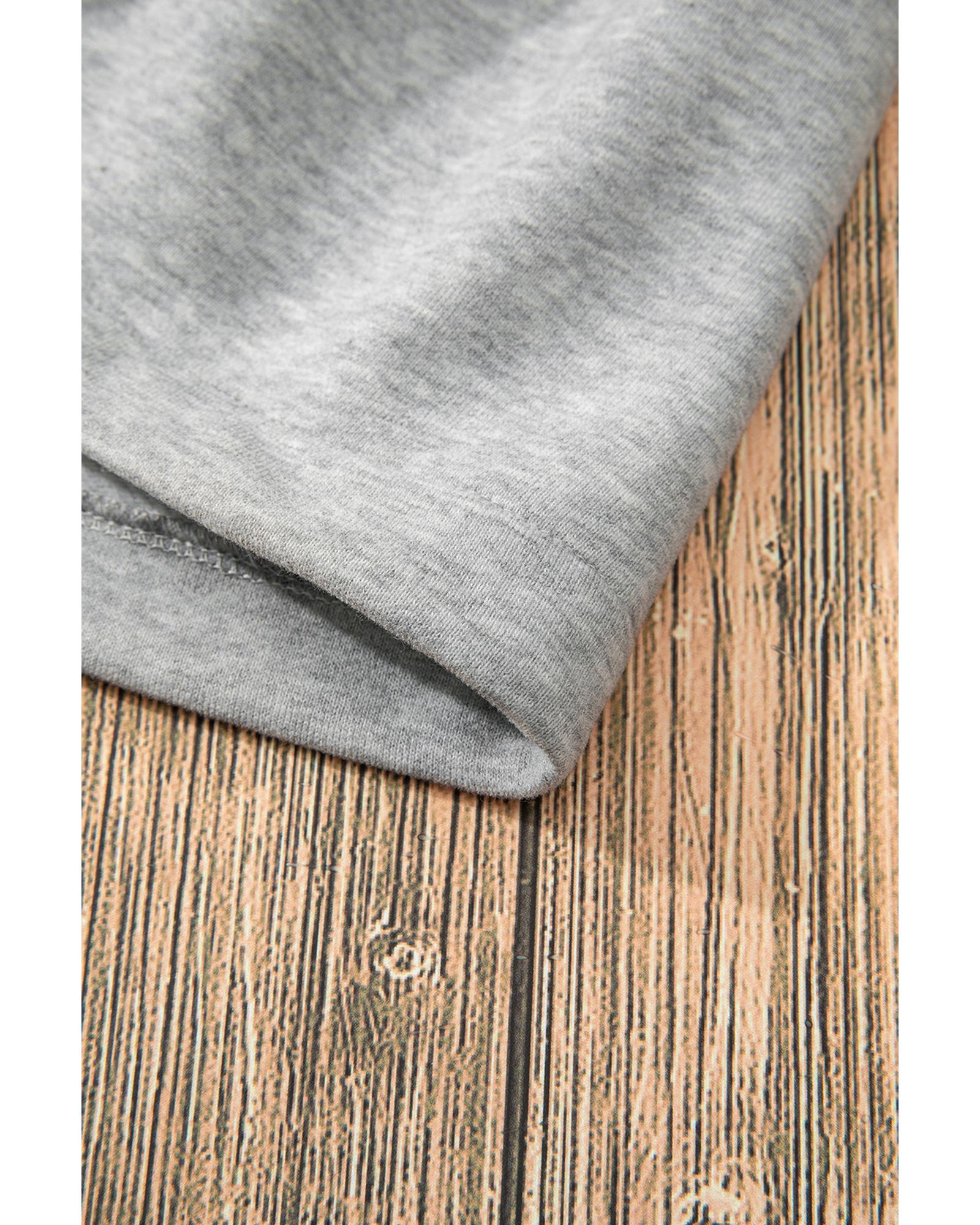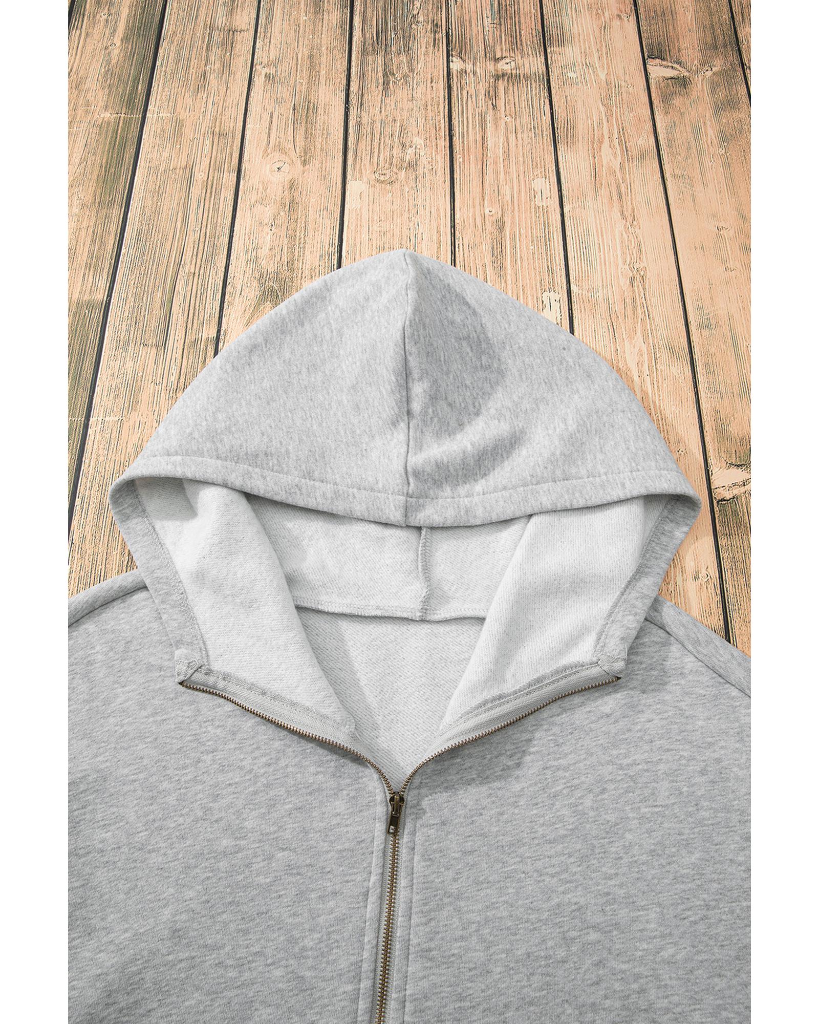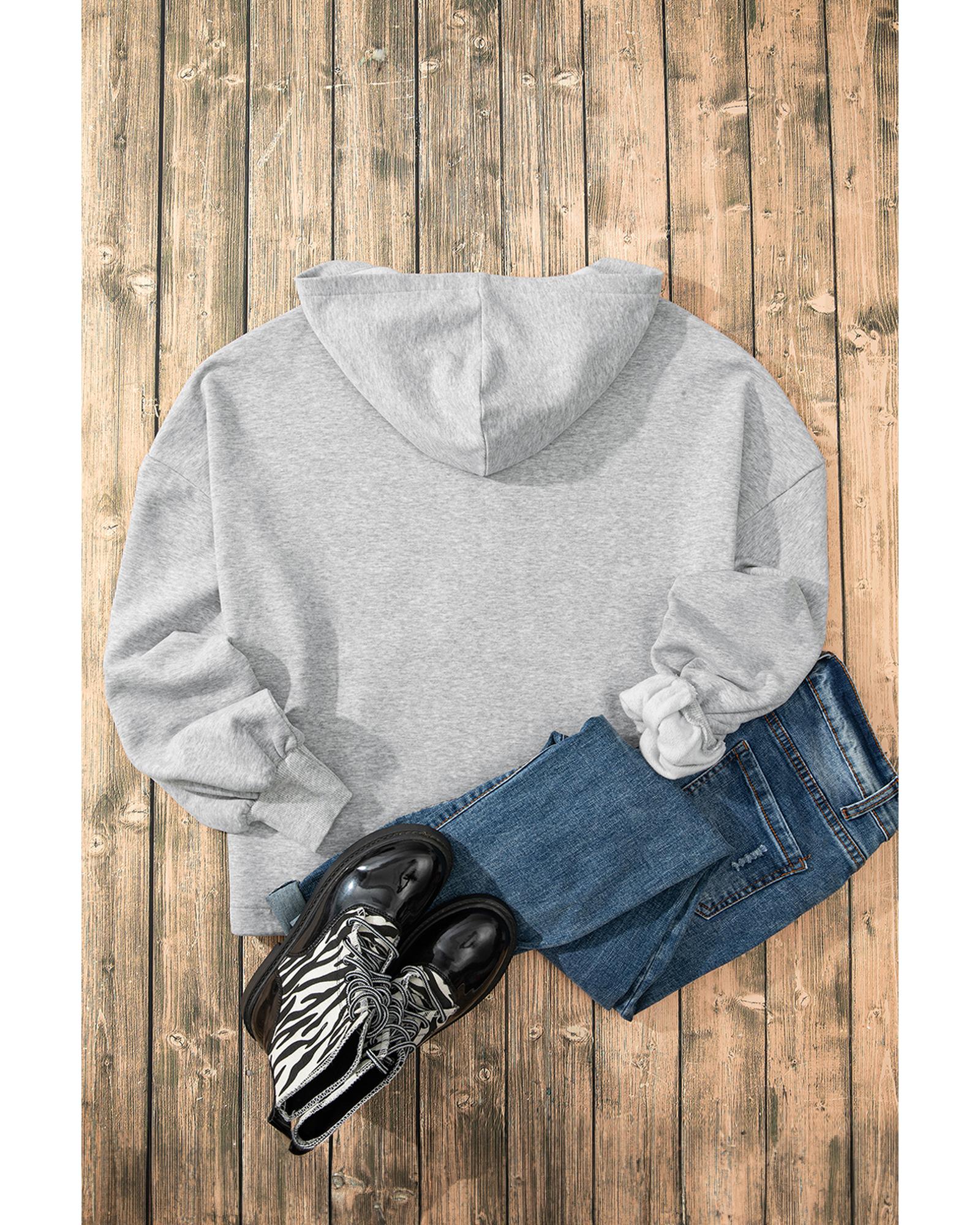 Light Grey Fleece Lined Half Zipper Kangaroo Pockets Loose Hoodie – M