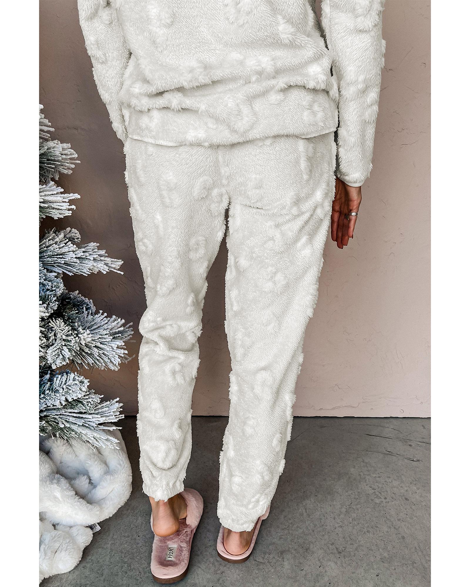 Light Grey Leopard Textured Loose Fit Fleece Lounge Set – S