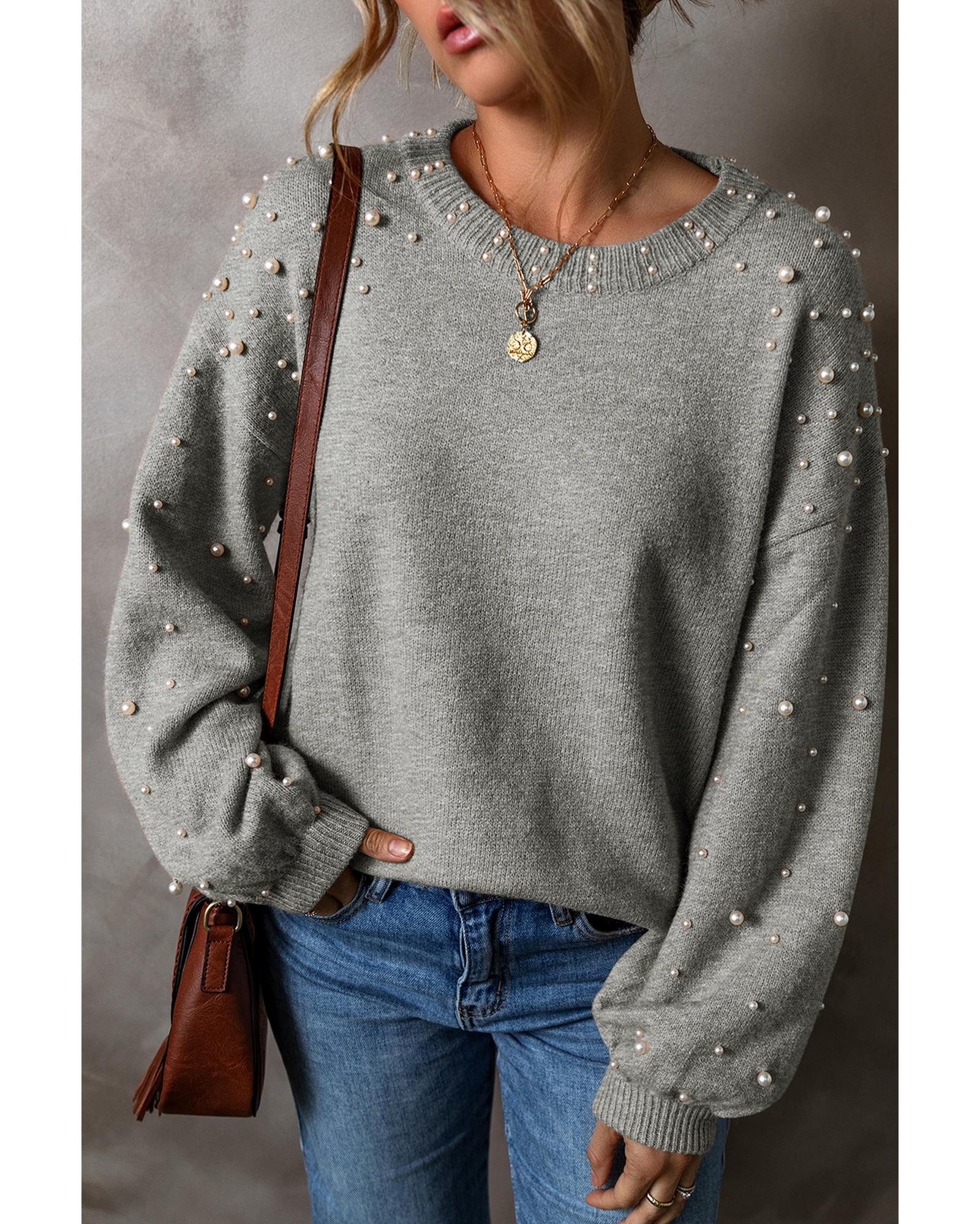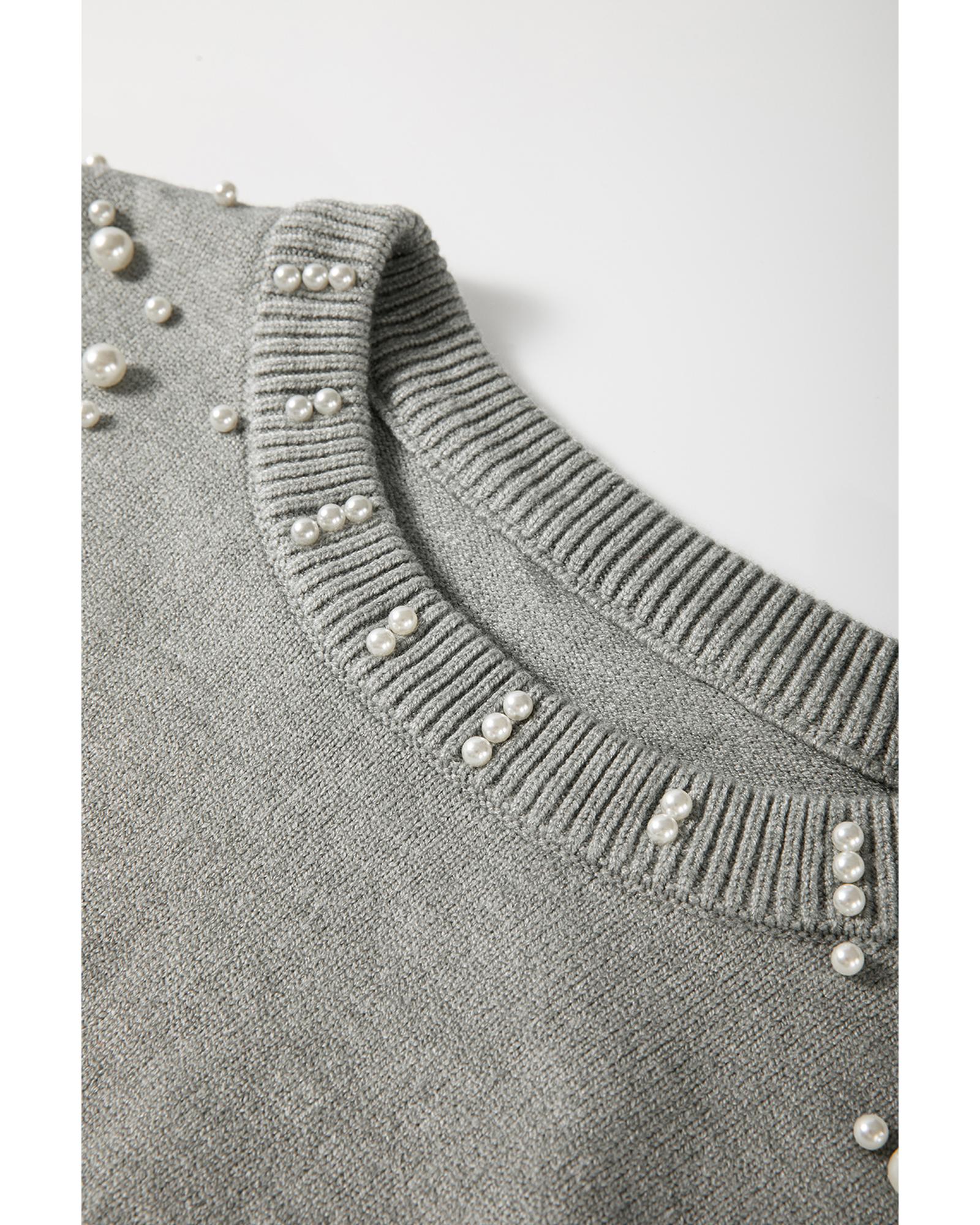 - Light grey sweater with pearled details