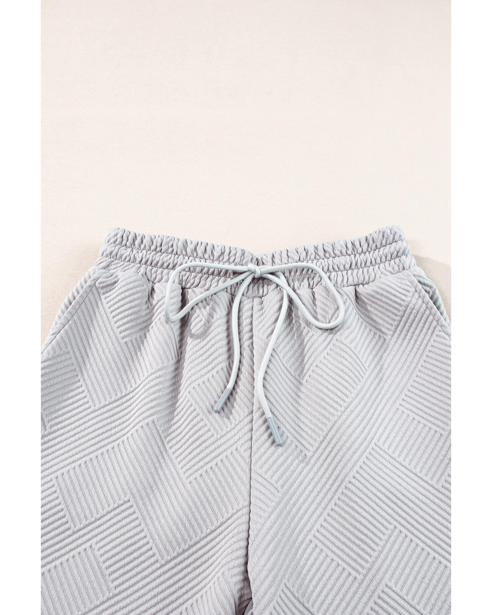 Light Grey Solid Textured Collared V Neck Top and Wide Leg Pants Set – L