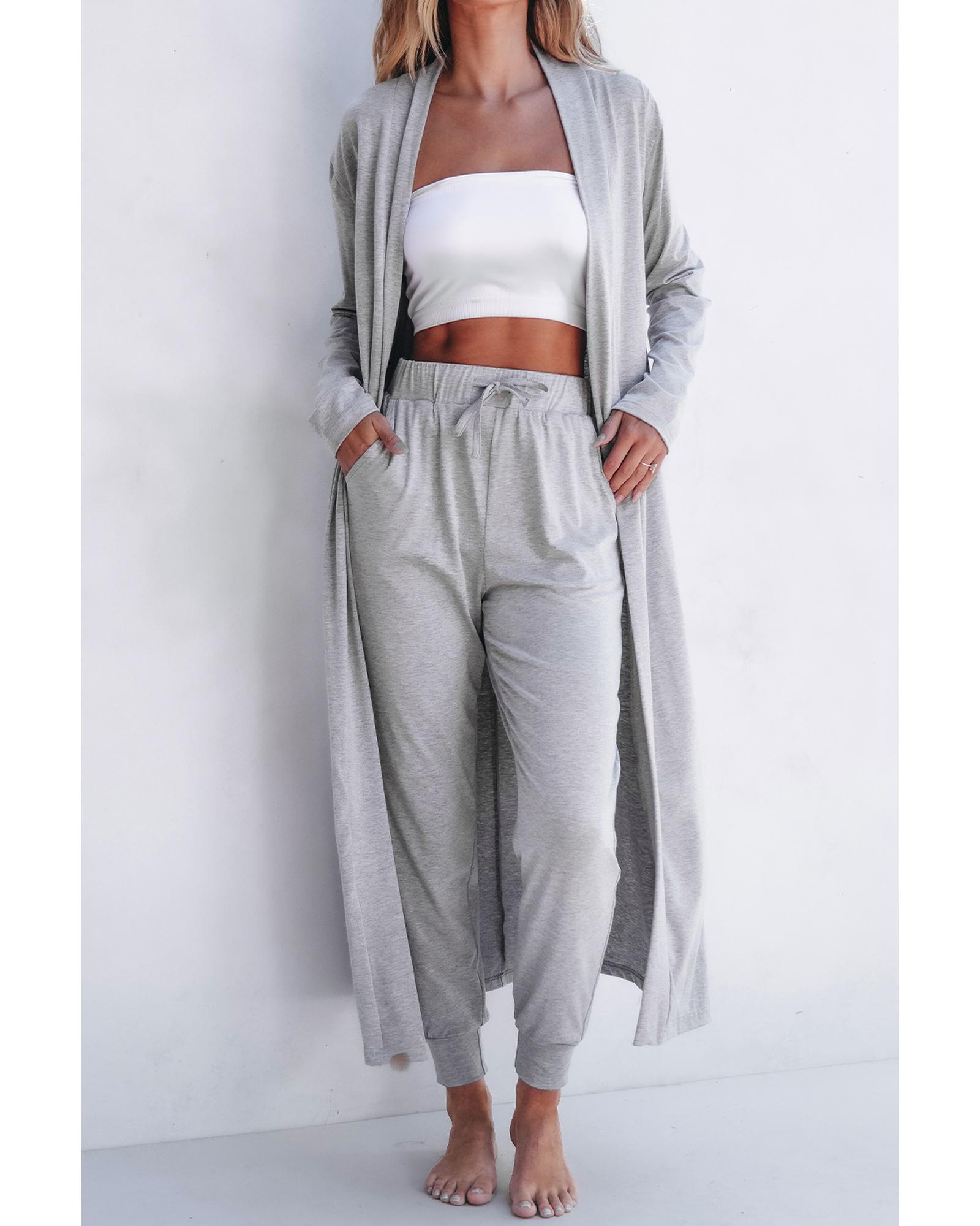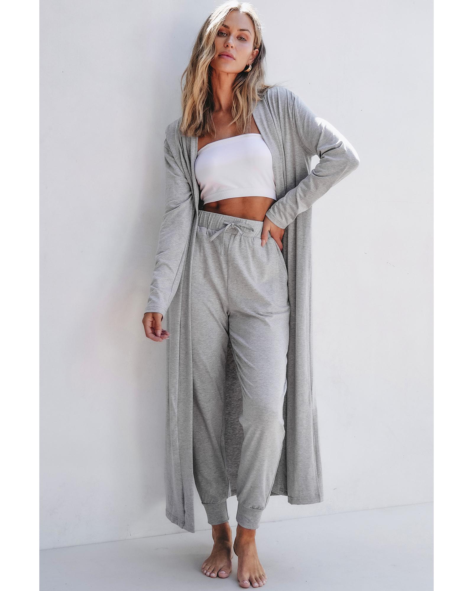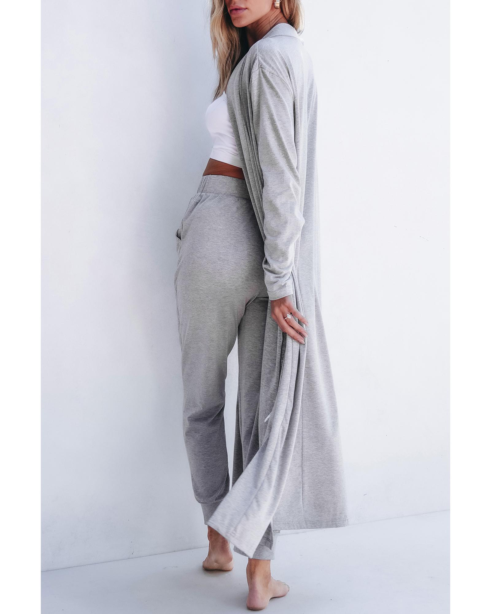 - Light grey split long cardigan and skinny pants lounge set