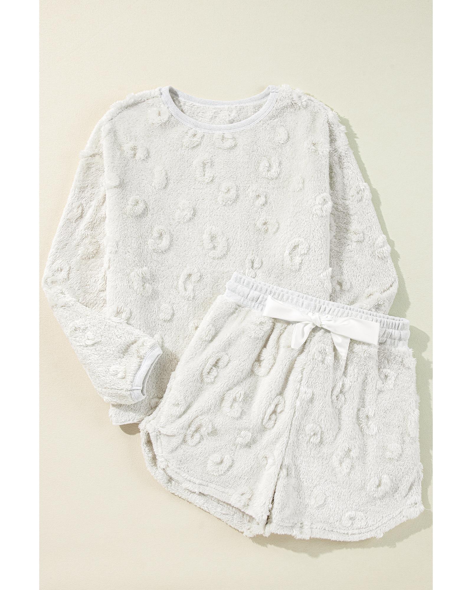 - Light Grey Textured Leopard Fleece Loose Two Piece Lounge Set