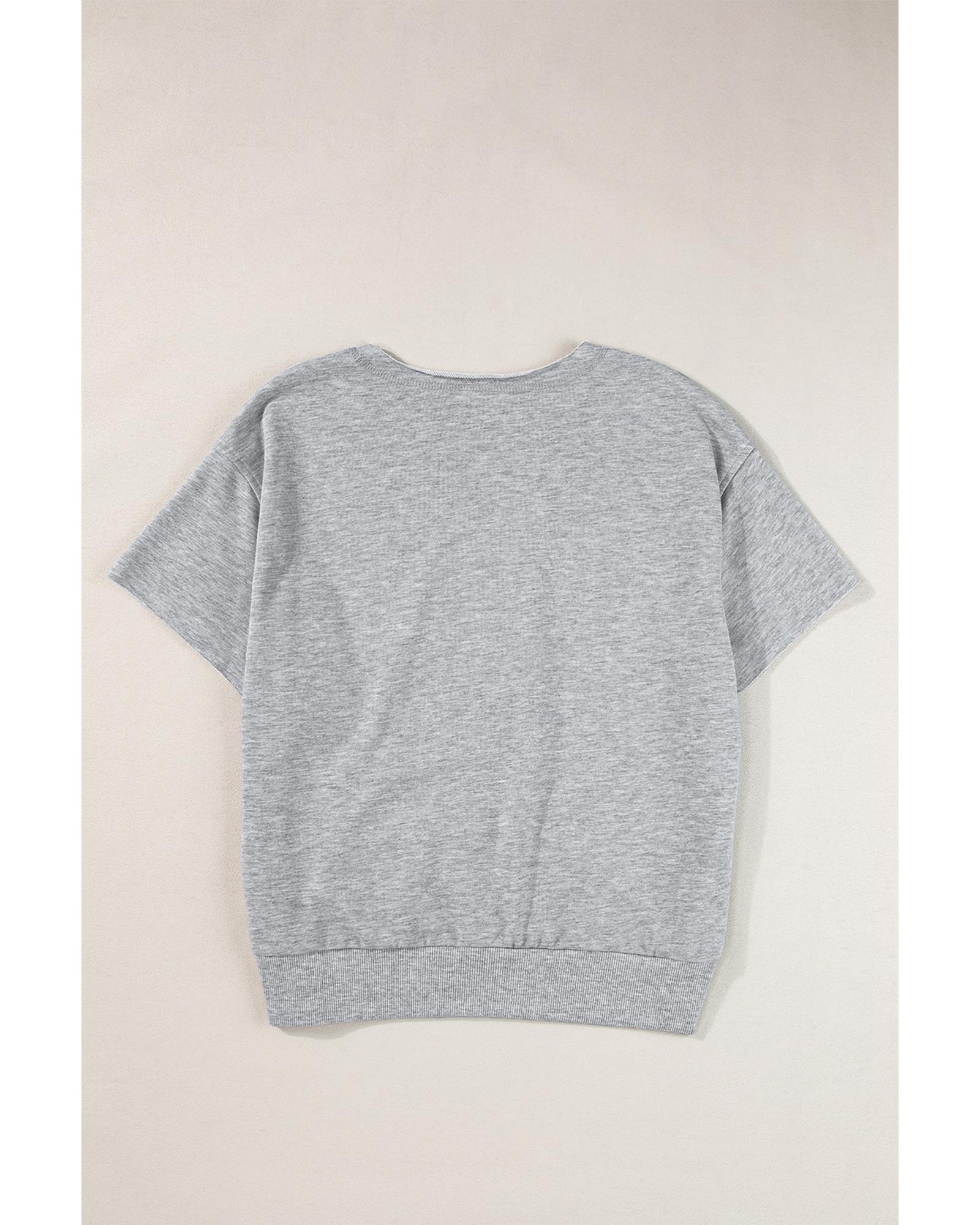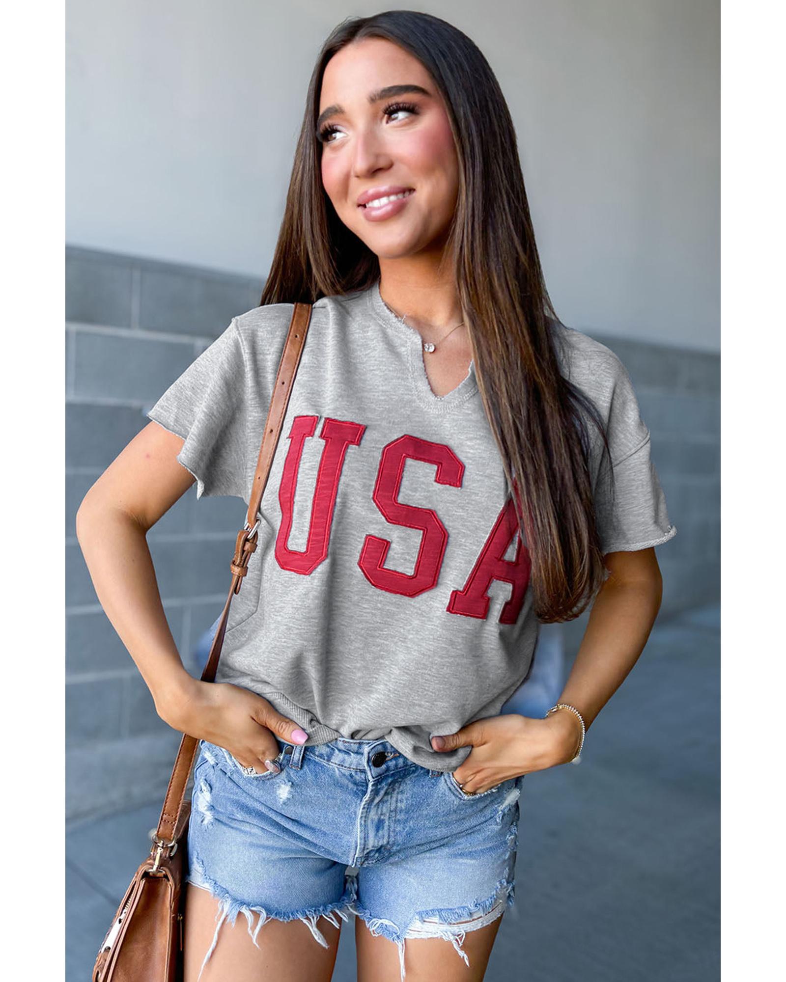 - Light Grey USA Lettering Patch Notched Neck Loose Tee