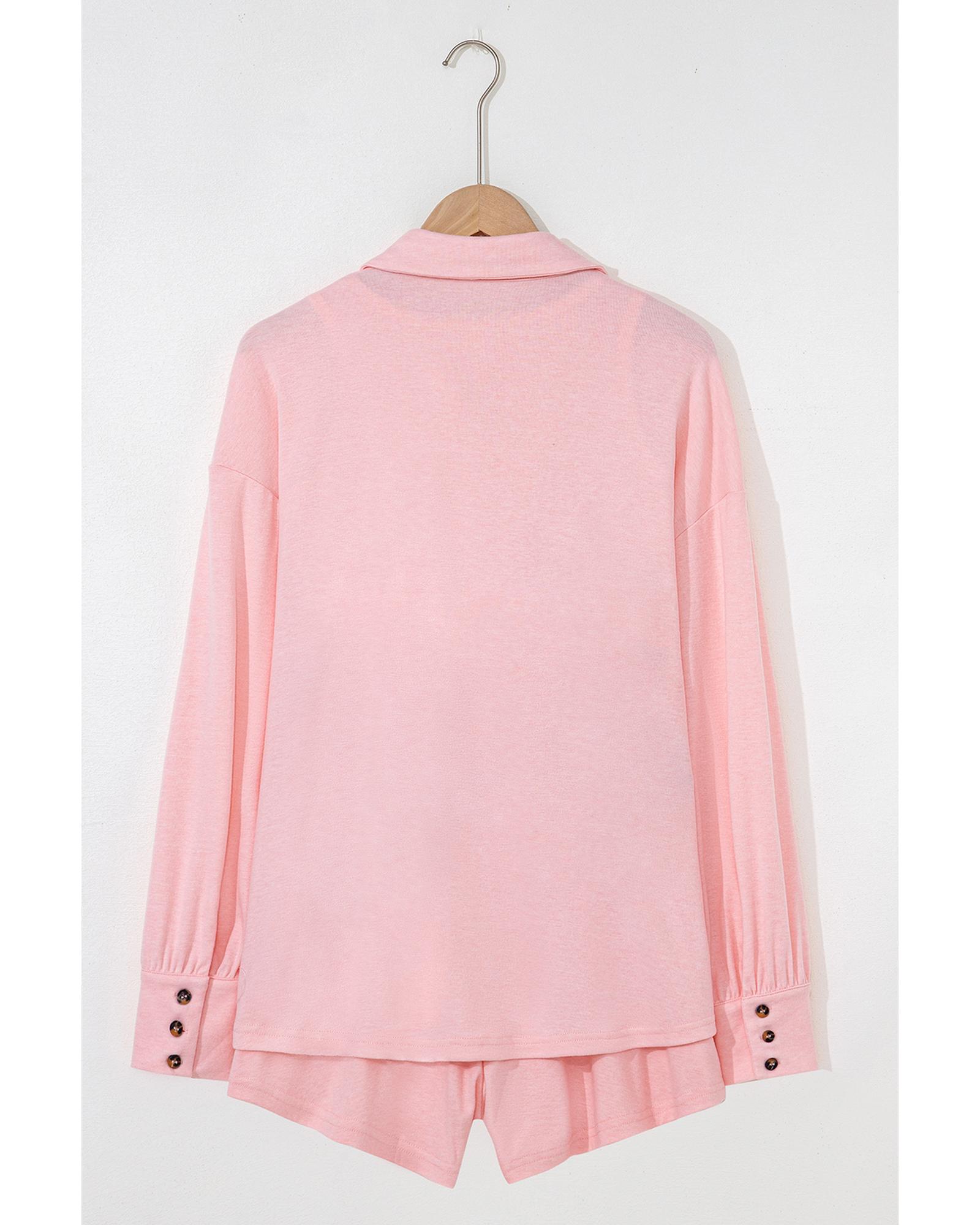Light Pink 3 Pcs Crop Tank Top Shorts with Cardigan Lounge Set – XL