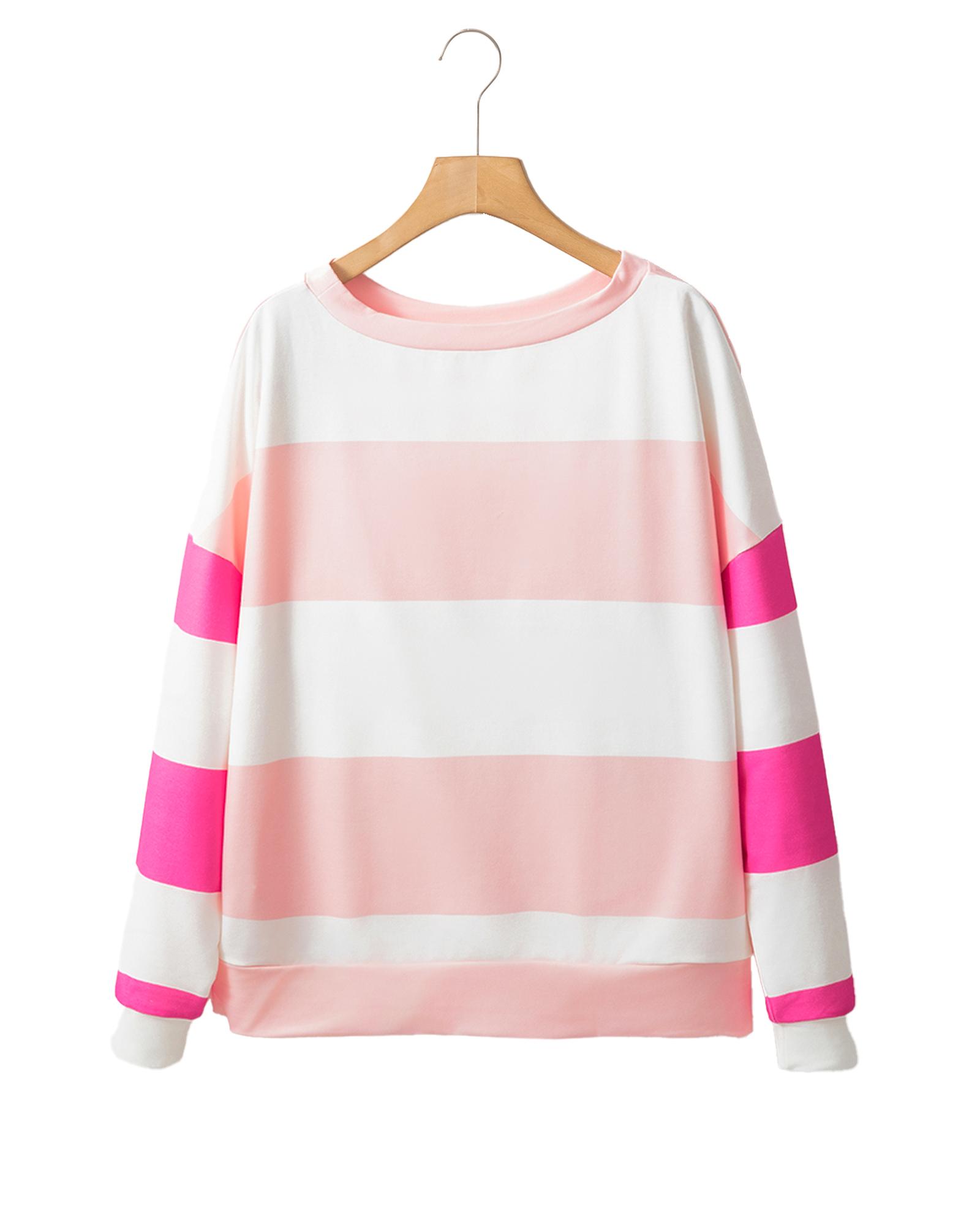 Light Pink Colorblock Striped Drop Shoulder Long Sleeve Top – XL