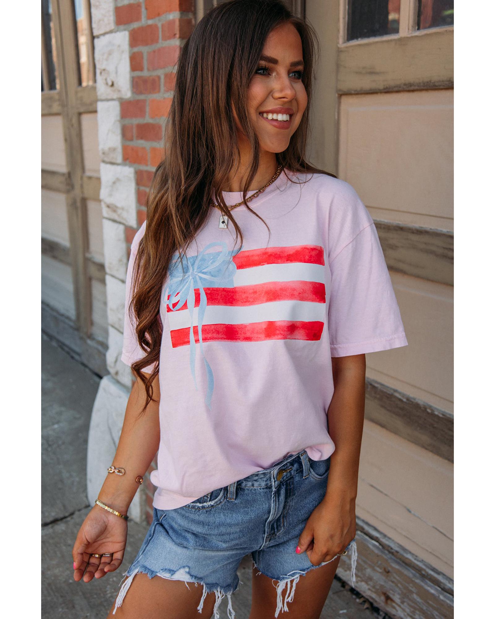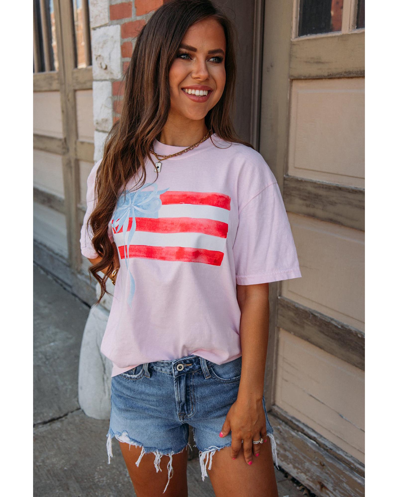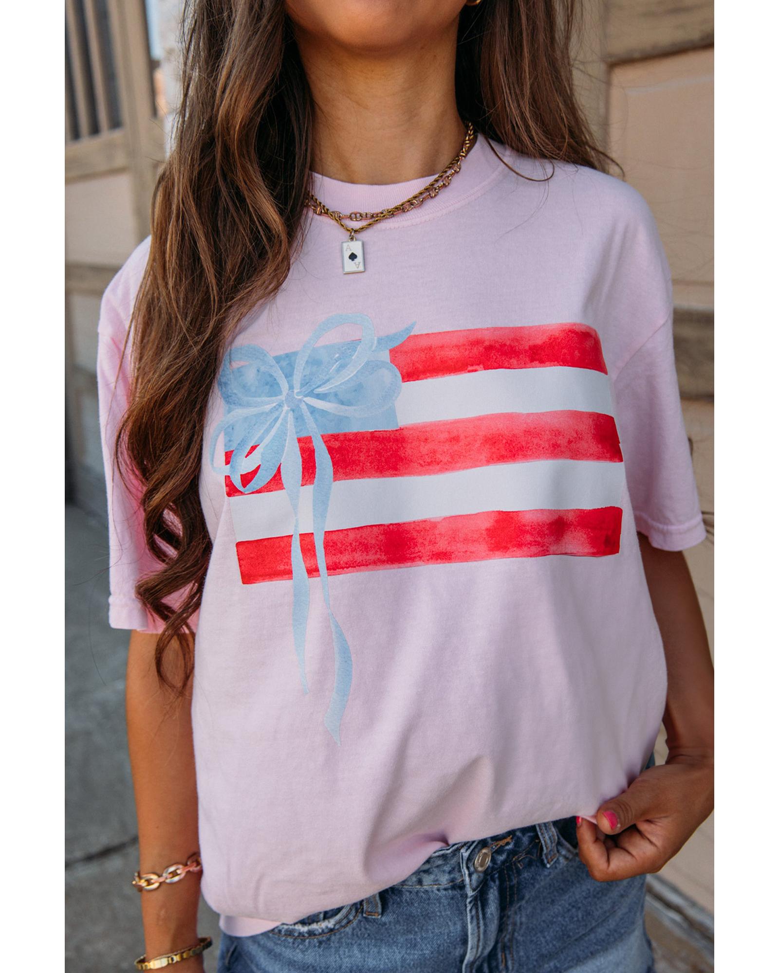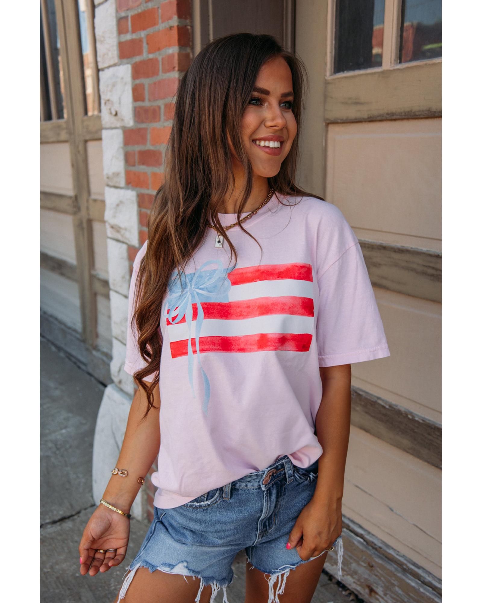 Light Pink Flag Bow Graphic Crewneck Tee – M