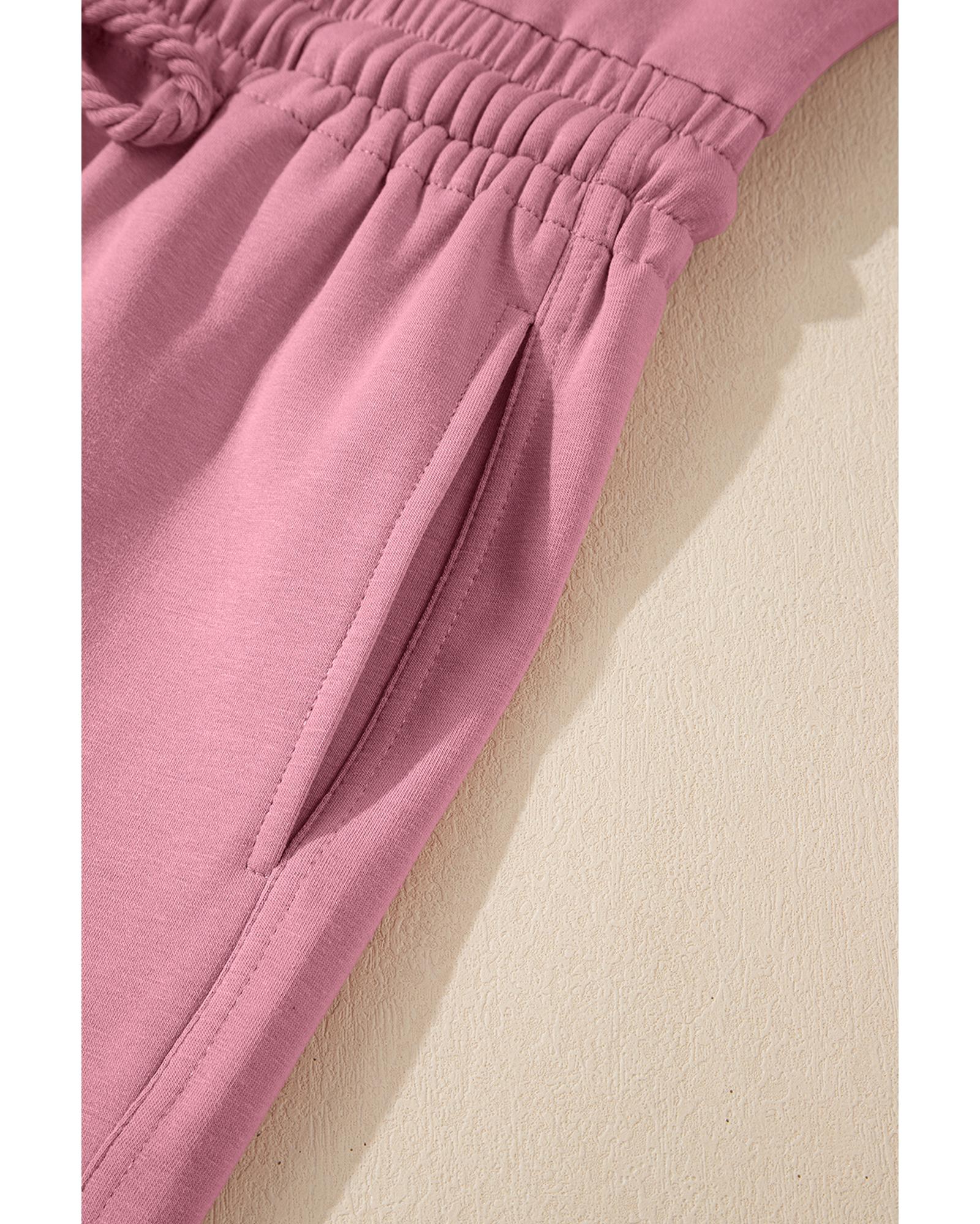 Light Pink Lace-up Elastic Waist Sleeveless Square Neck Jumpsuit – L