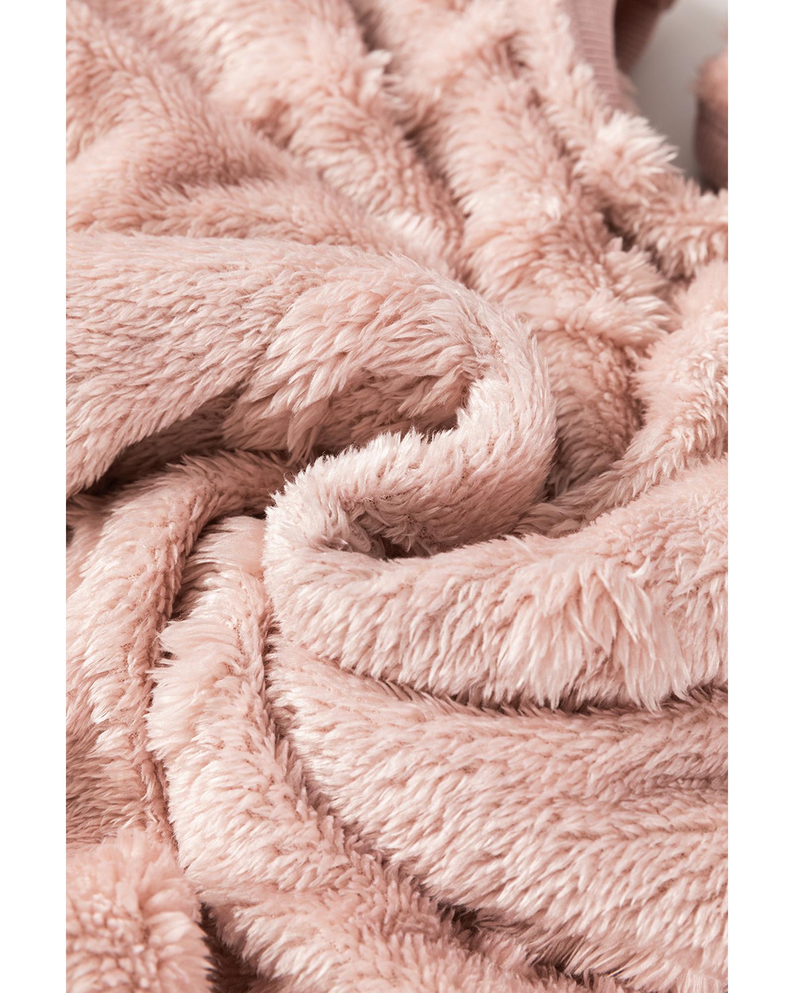 Light Pink Textured Leopard Fleece Loose Two Piece Lounge Set – XL