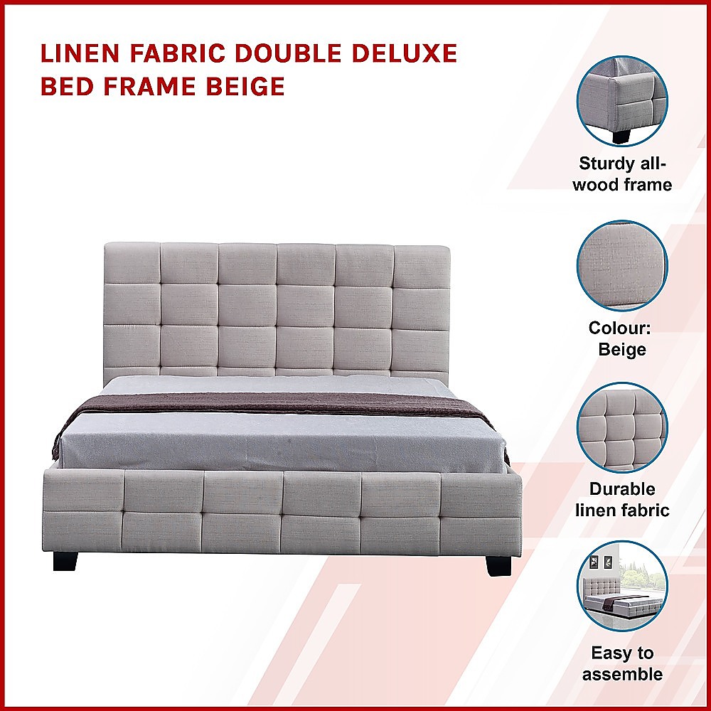Palermo Linen Fabric Double Bed Frame and Button Tufted Headboard Beige