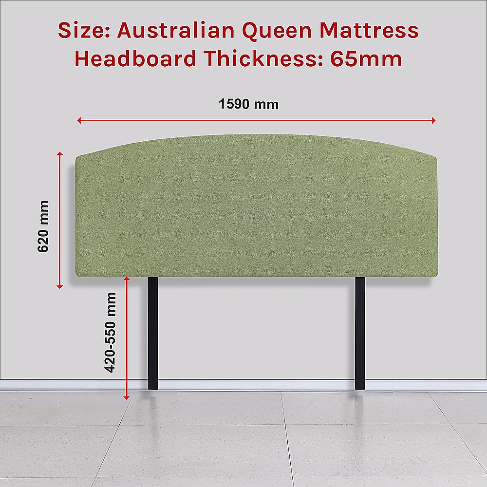 Linen Fabric Queen Bed Curved Headboard Bedhead – Olive Green