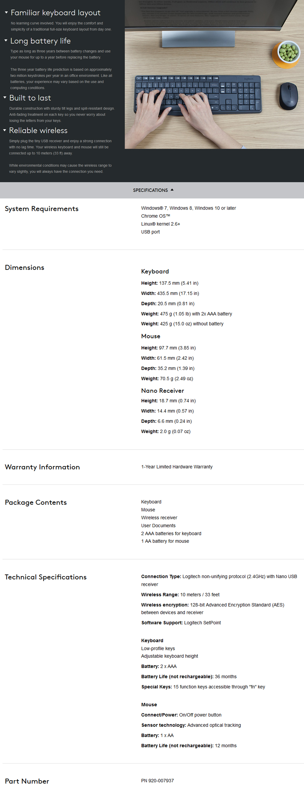 Logitech MK235 Wireless Keyboard Mouse (920-007937)