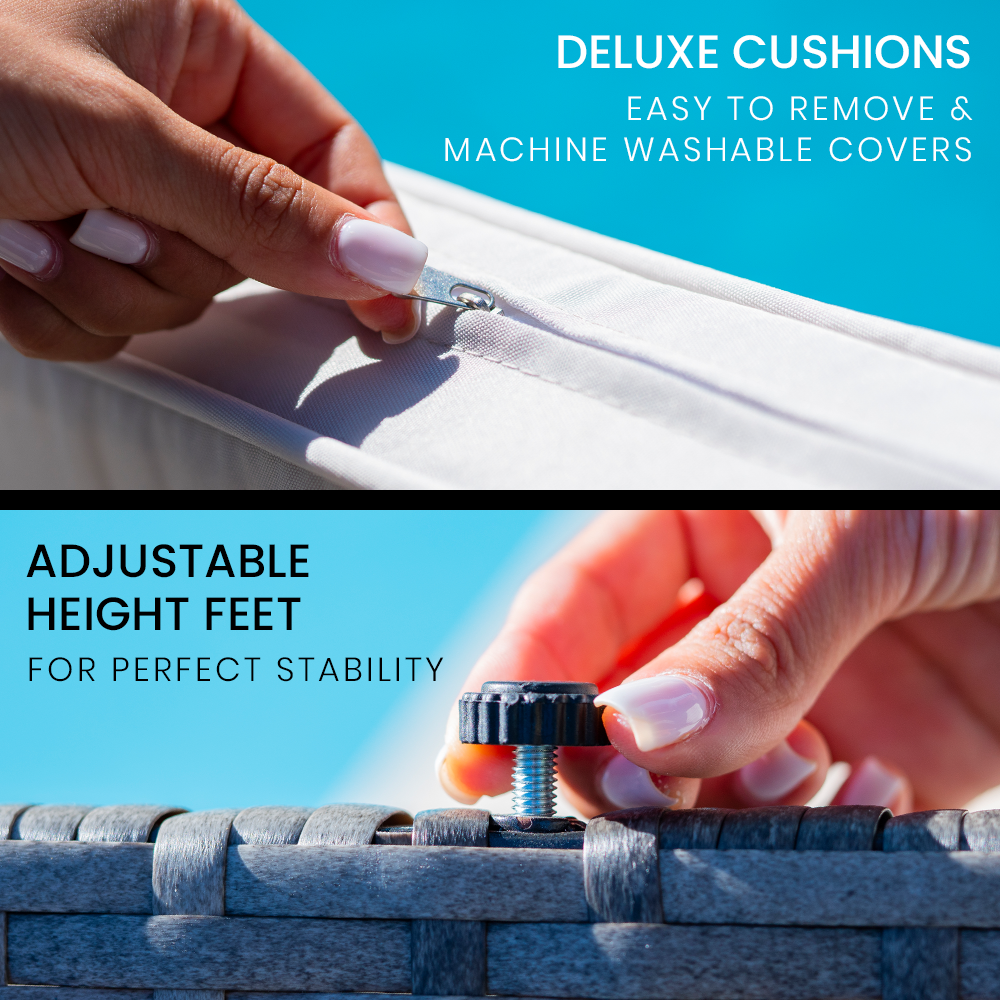 The Noosa Heads Collection Daybed is wrapped in a premium hand-woven SunTech resin wicker with an impressively natural look. The weave material is UV stablised and up to 40% thicker than most others, ensuring it will continue to look as good as the day you bought it for many years to come. The Daybed features adjustable feet to offer stability and comfort.