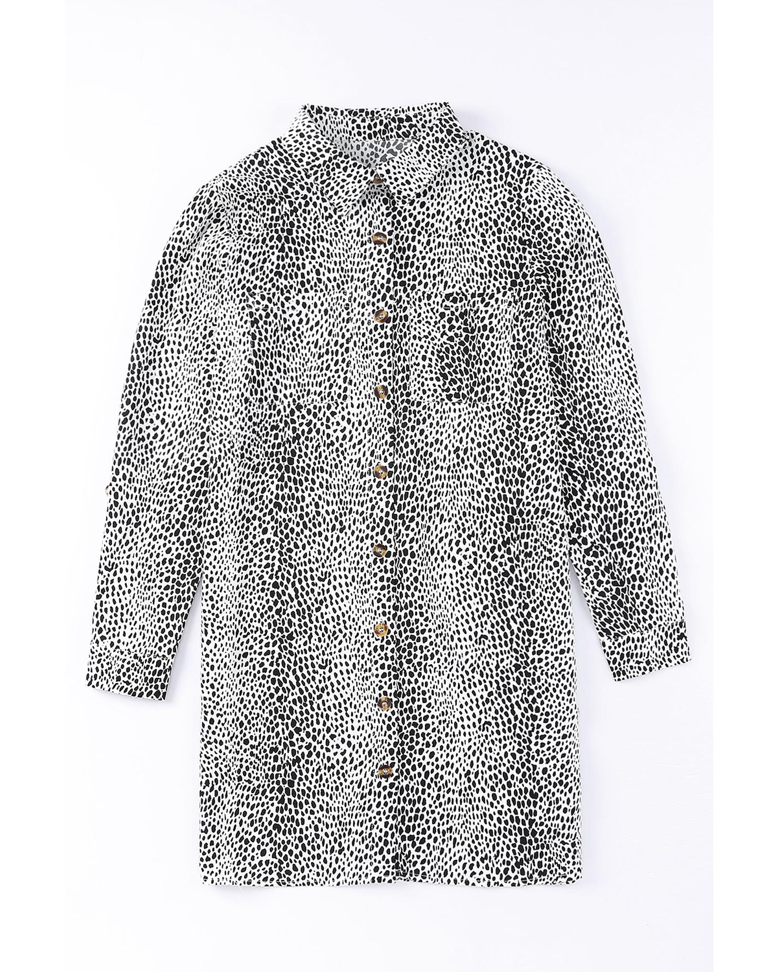 - Stylish and versatile Long Sleeve Leopard Animal Print Shirt Dress for women