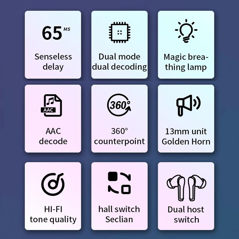 Low Latency Wireless Bluetooth Game Earphones with Colourful Lights – Non-Digital Display