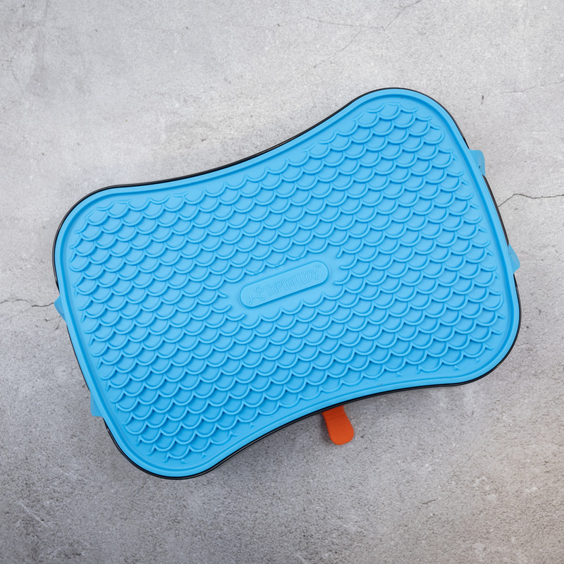 Made from thick, food-grade silicone that won’t curl or tear, it’s built to last through enthusiastic licking and regular dishwasher cycles. Use it as a standalone enrichment tool, a calming aid during bath time, or as a lid for your Super Feedy Slow Feeder Bowl to prep meals ahead or take food on the go. Simple, smart, and stress-reducing — this mat does it all.