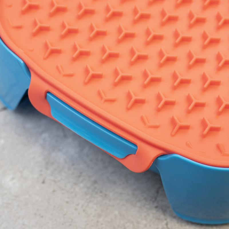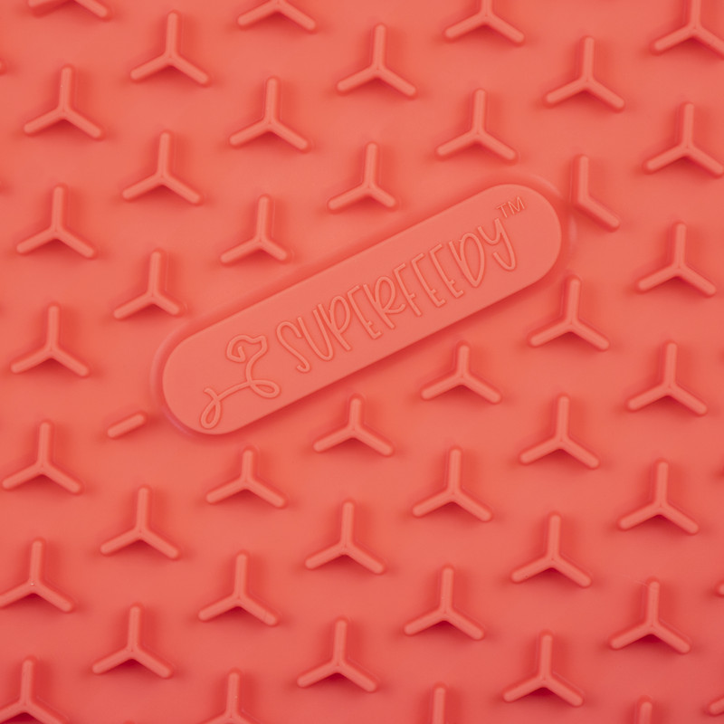 Made from thick, food-grade silicone that won’t curl or tear, it’s built to last through enthusiastic licking and regular dishwasher cycles. Use it as a standalone enrichment tool, a calming aid during bath time, or as a lid for your Super Feedy Slow Feeder Bowl to prep meals ahead or take food on the go. Simple, smart, and stress-reducing — this mat does it all.