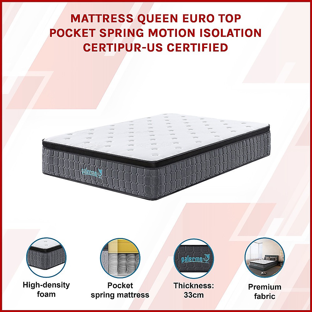 Mattress Queen Euro Top Pocket Spring Motion Isolation CertiPUR-US Certified