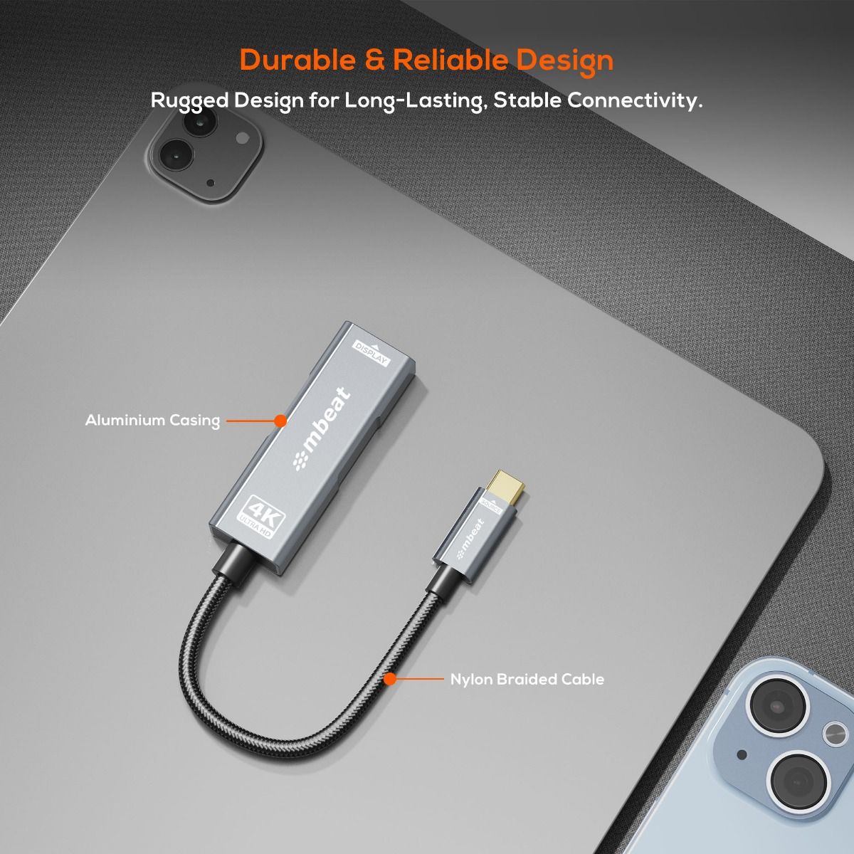 Experience stunning 4K visuals and seamless pass-through charging with the mbeat Tough Link 4K USB-C to DisplayPort Adapter. Perfect for professionals and entertainment, it allows you to charge your laptop while enjoying crisp, vibrant displays for all your work and entertainment needs.