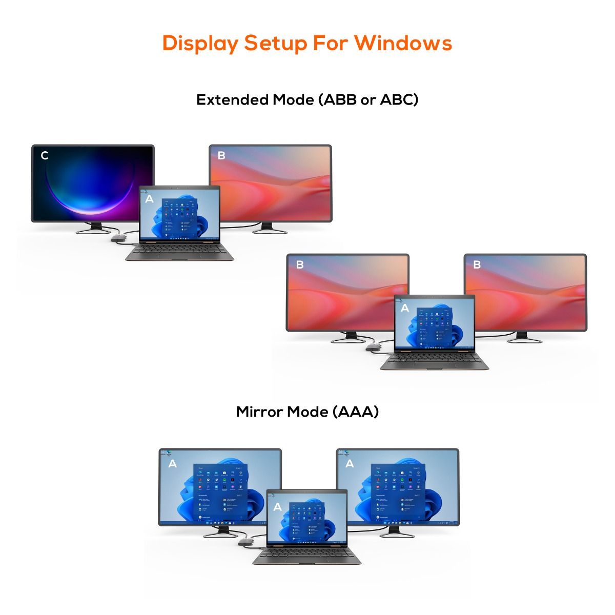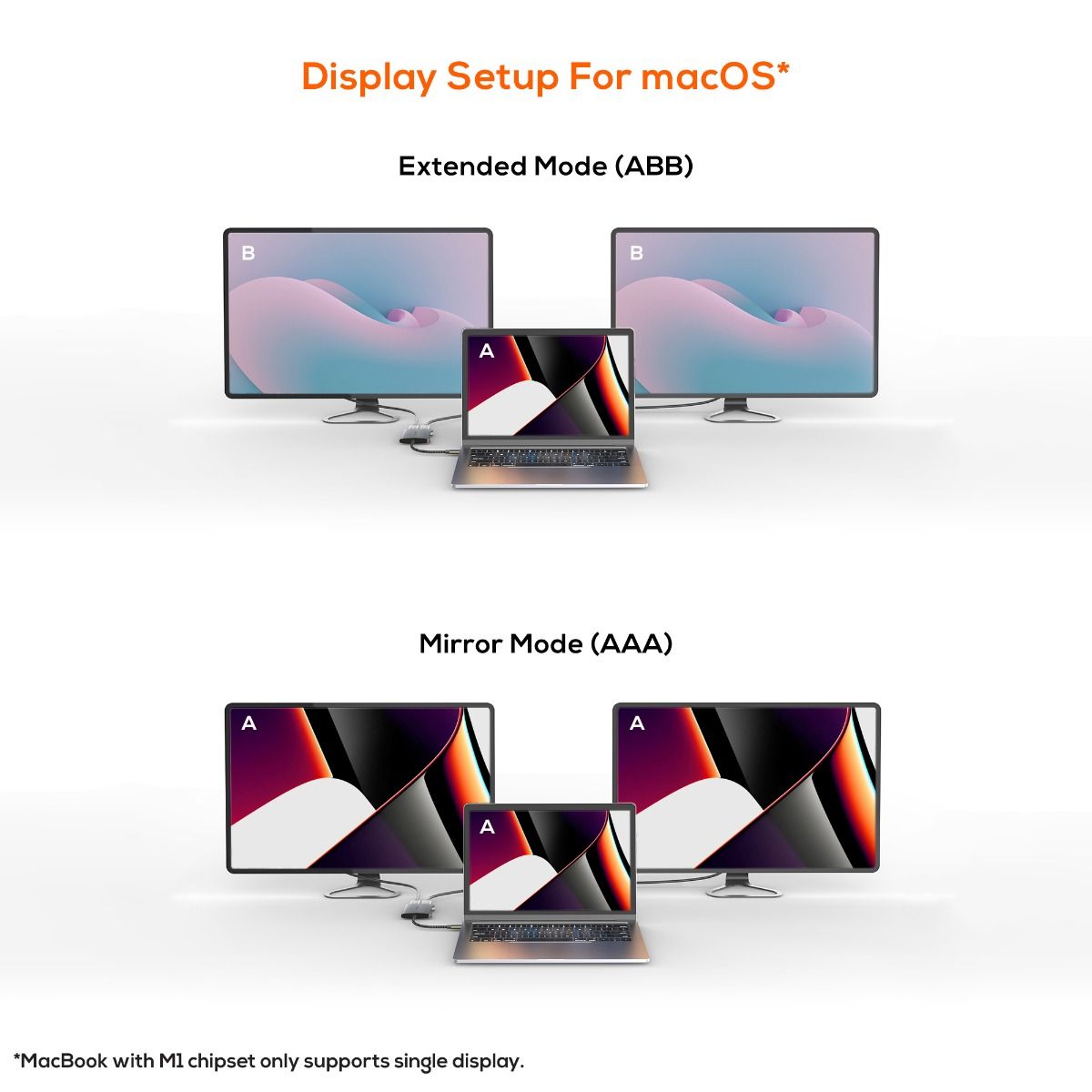 HDMI Resolution: 4K@60Hz with single HDMI output, macOS and Windows support dual HDMI with 4K@60Hz in SST mode, Windows supports dual HDMI 4K@30Hz in MST mode.