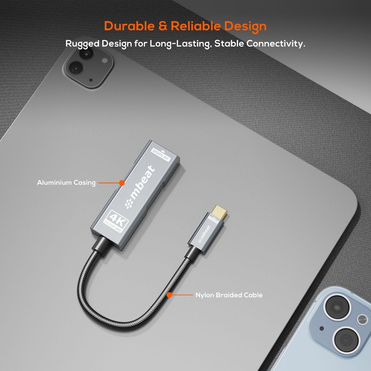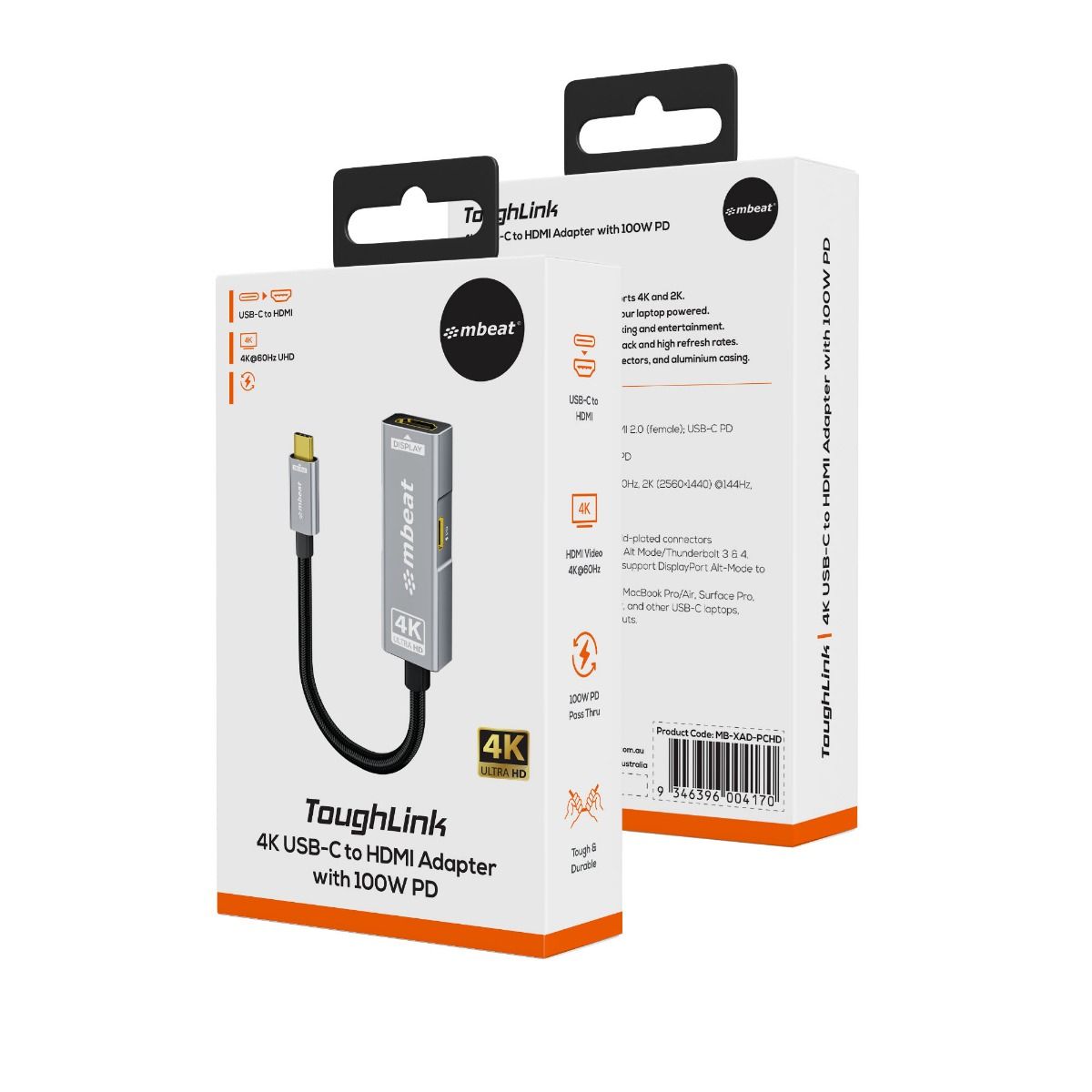 Experience stunning 4K visuals and seamless pass-through charging with the mbeat Tough Link 4K USB-C to HDMI Adapter. Perfect for professionals and entertainment, it allows you to charge your laptop while enjoying crisp, vibrant displays for all your work and entertainment needs.