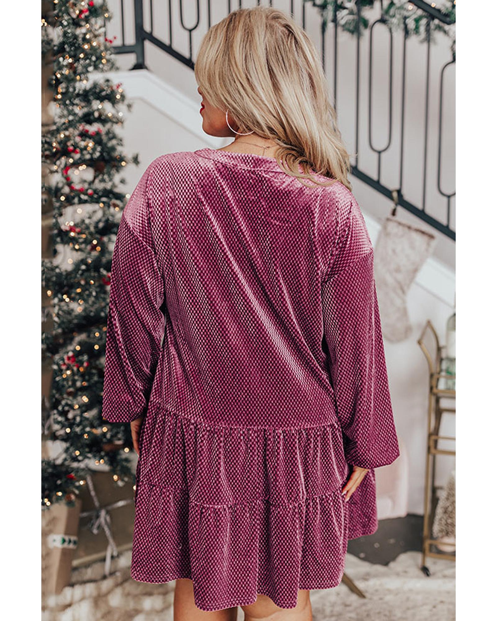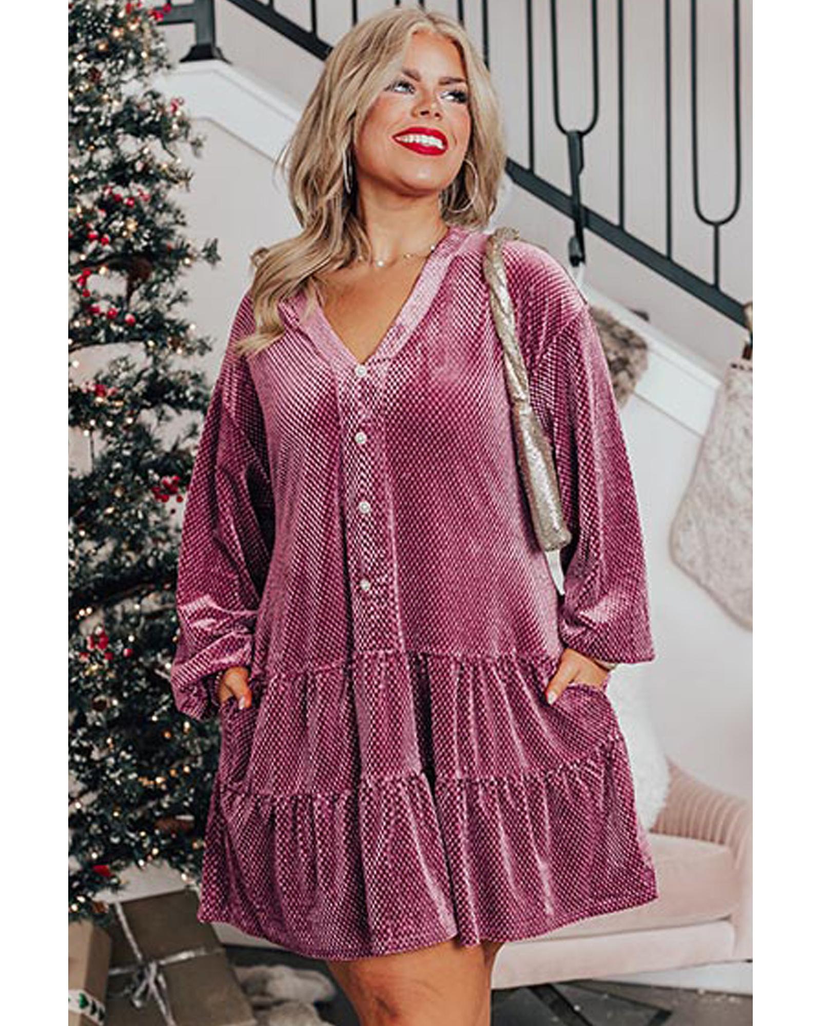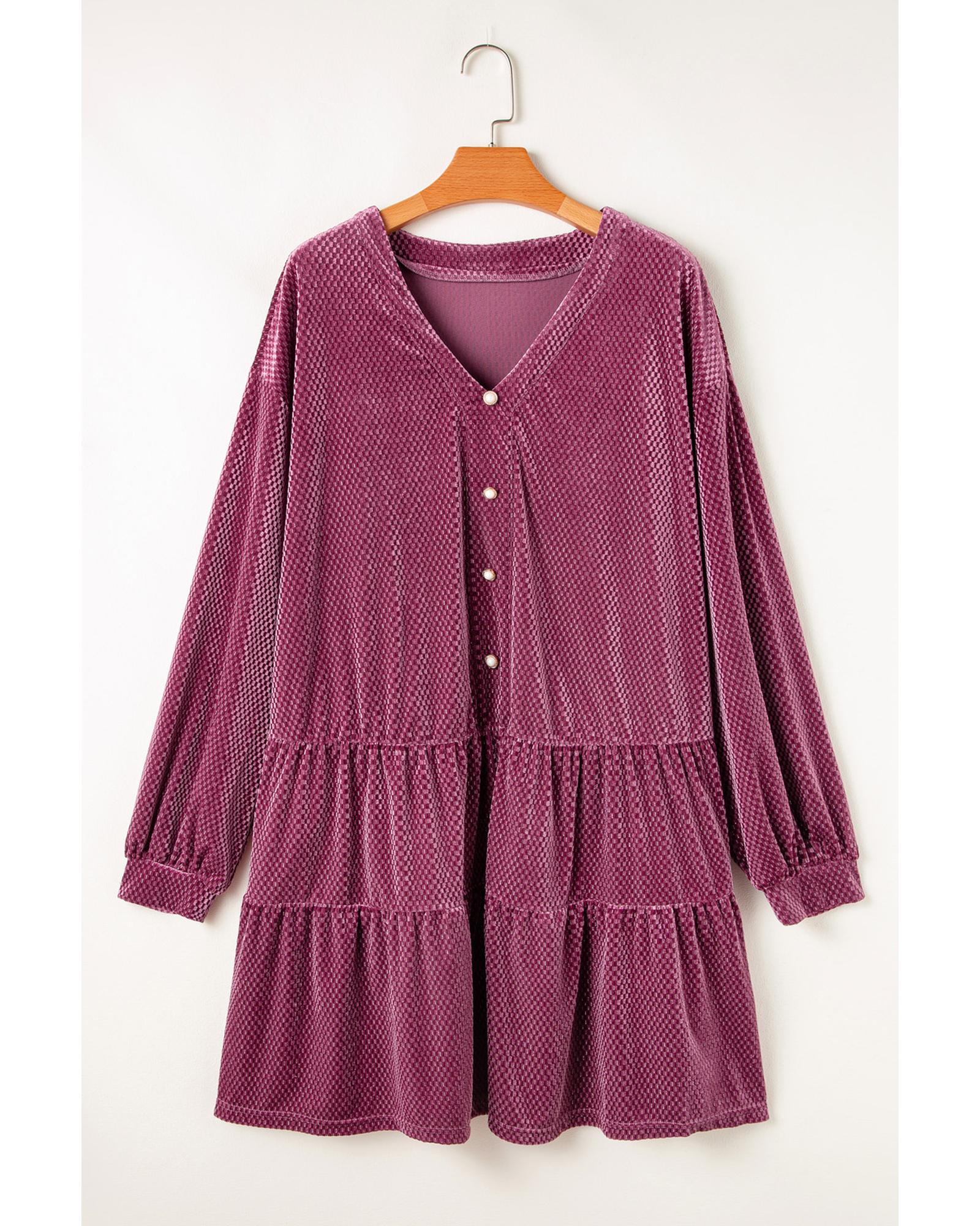 - Meadow Mauve Plus Size Textured Velvet Tiered Buttons Tiered Dress