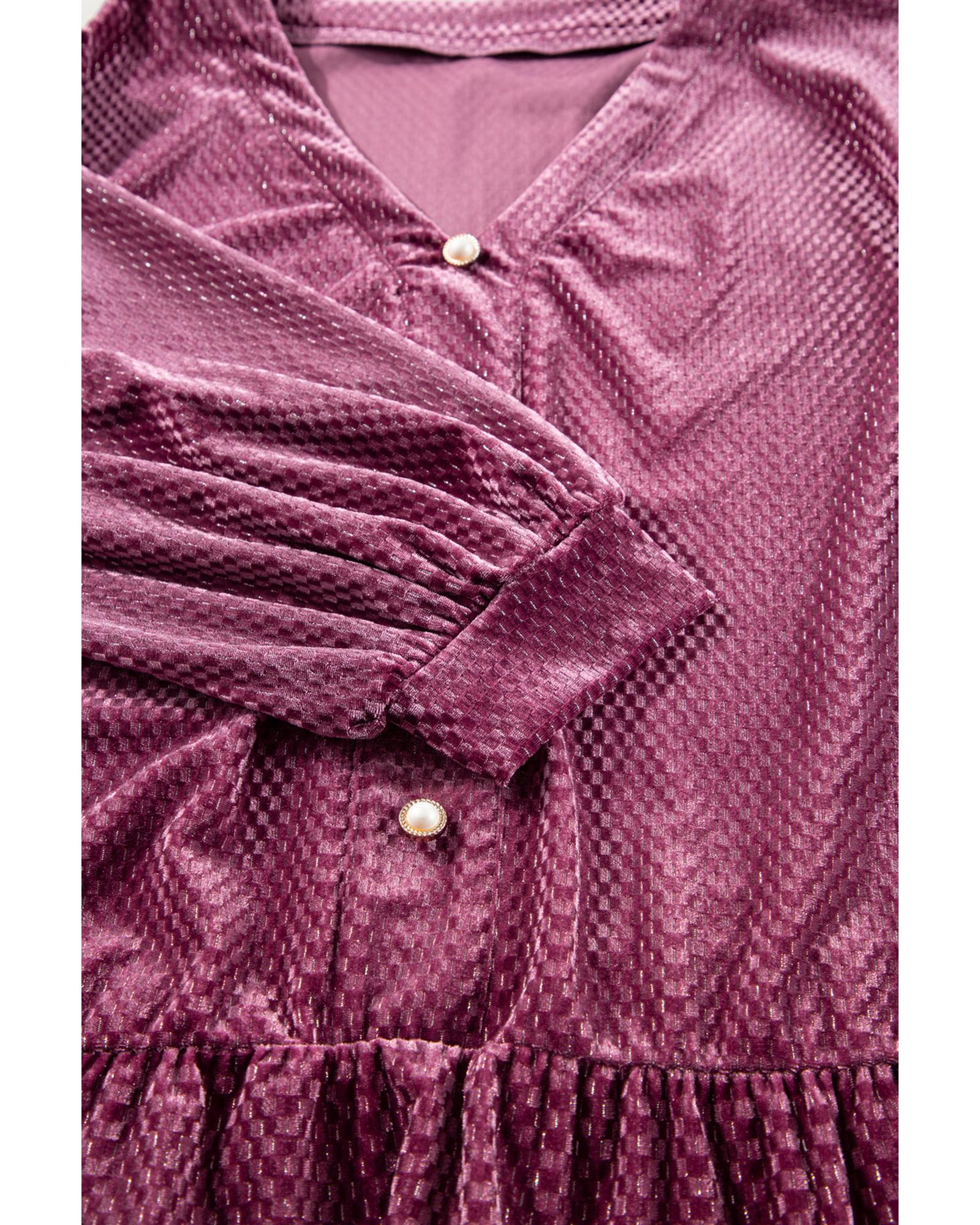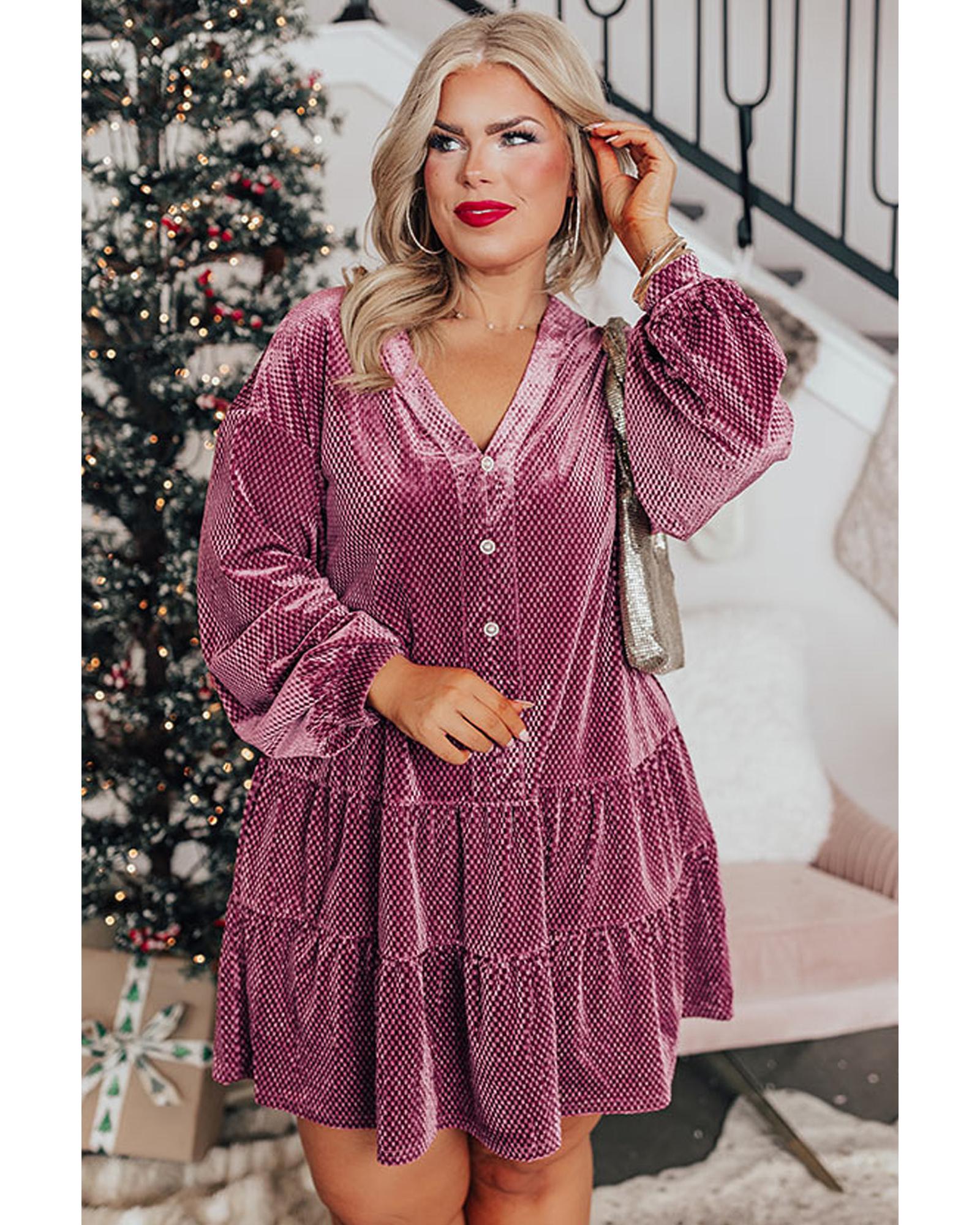- Meadow Mauve Plus Size Textured Velvet Tiered Buttons Tiered Dress