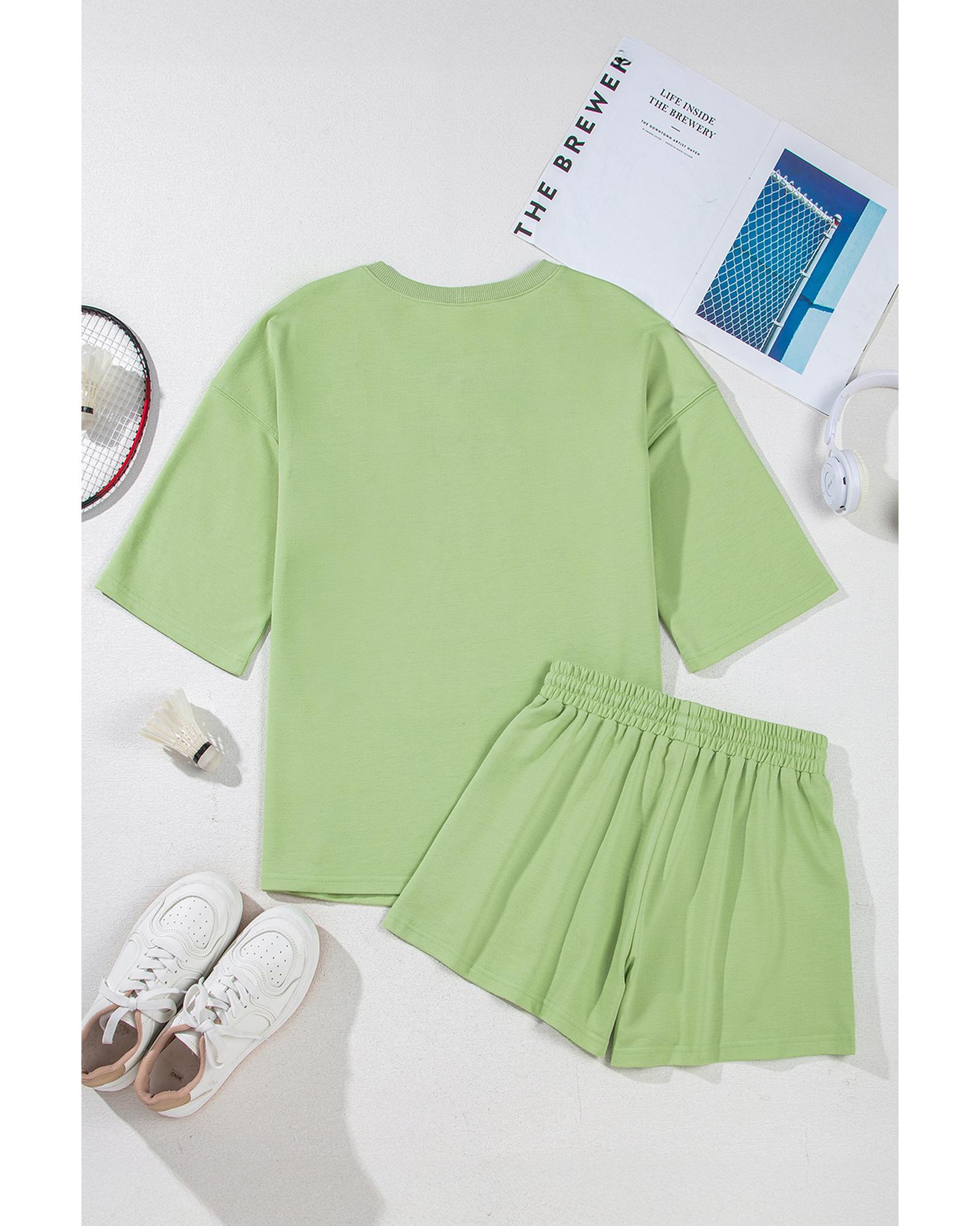 Meadow Mist Green Solid Loose V Neck Half Sleeve Tee and Shorts – L