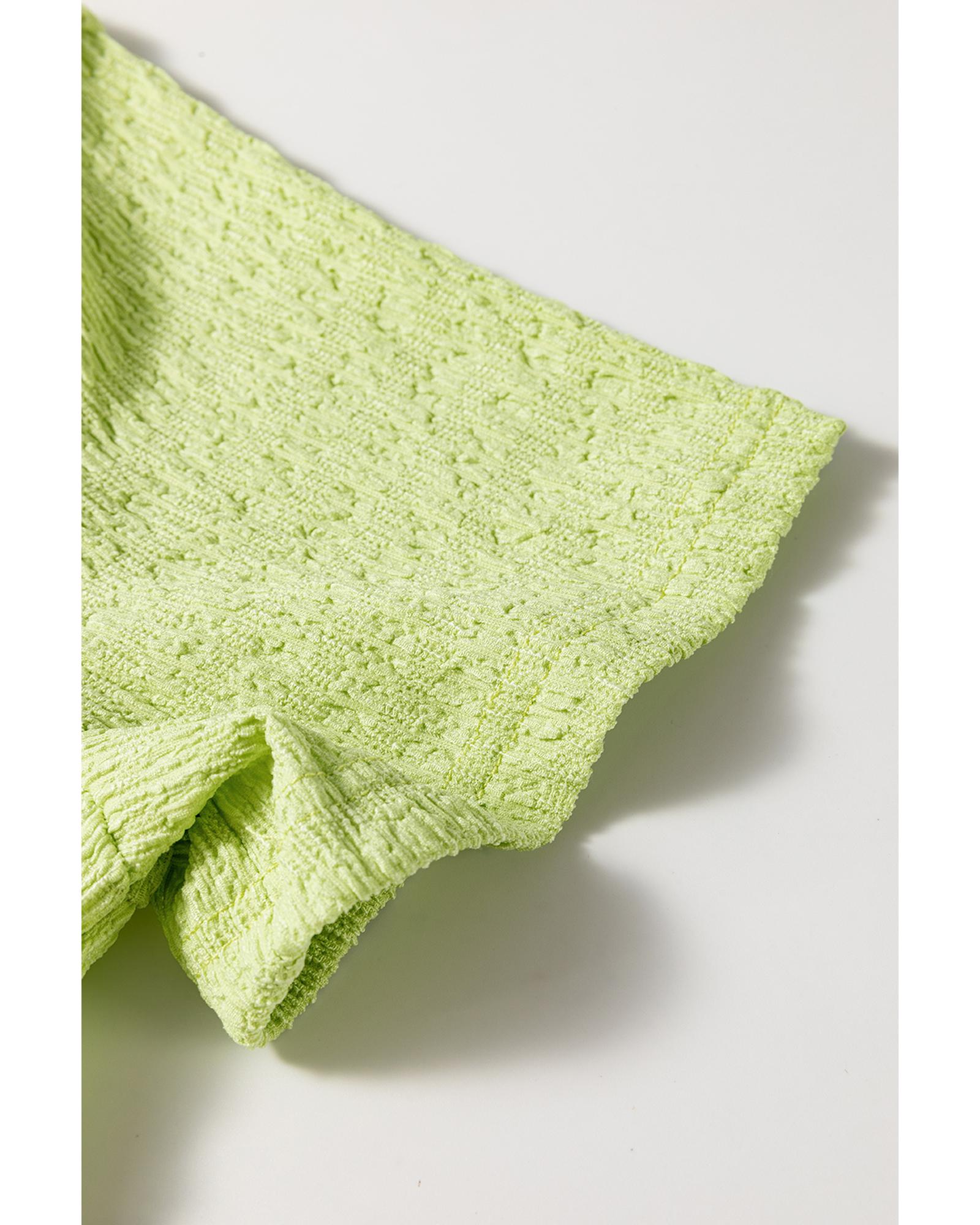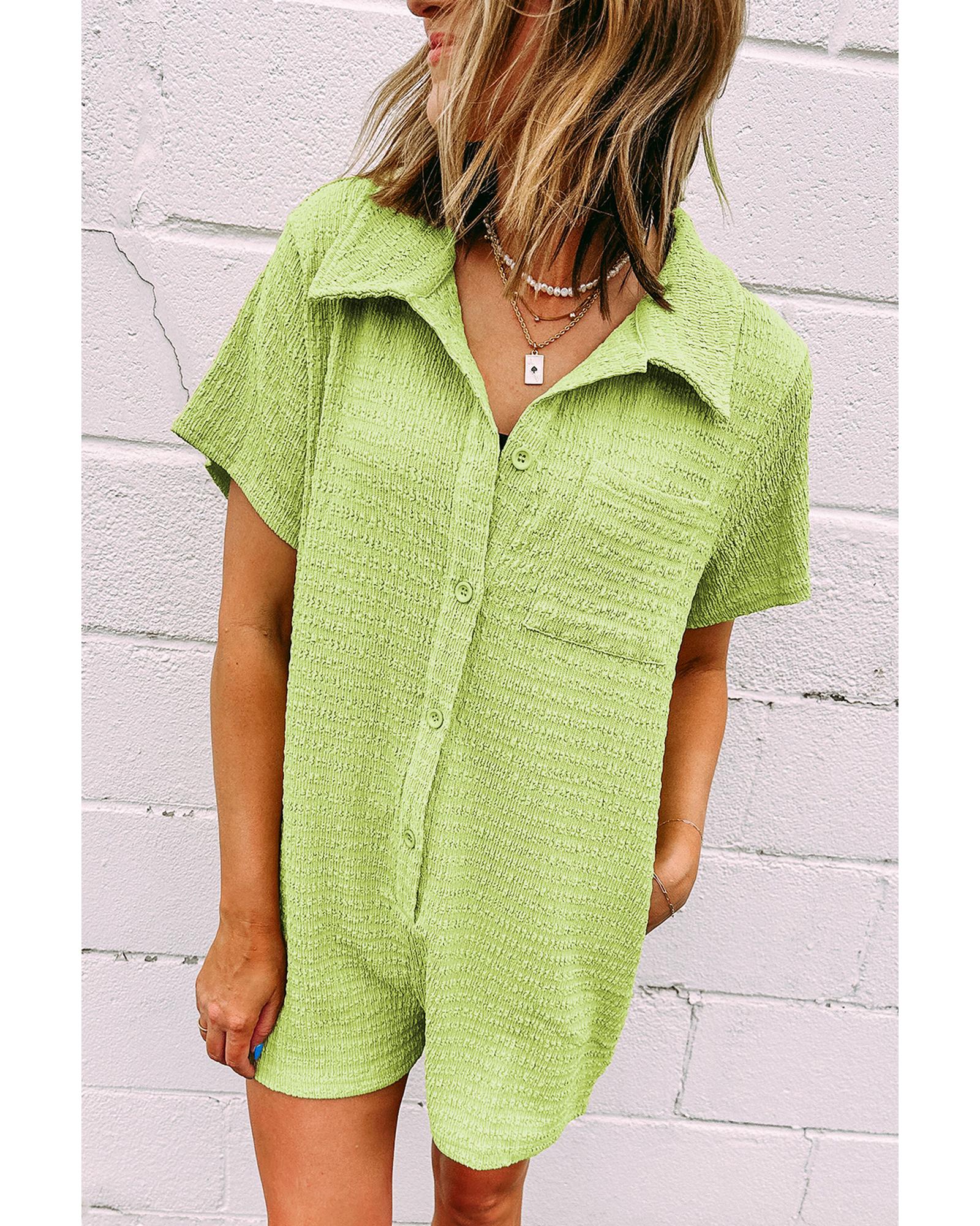 Meadow Mist Green Textured Short Sleeve Patched Pocket Buttoned Shirt Romper - M