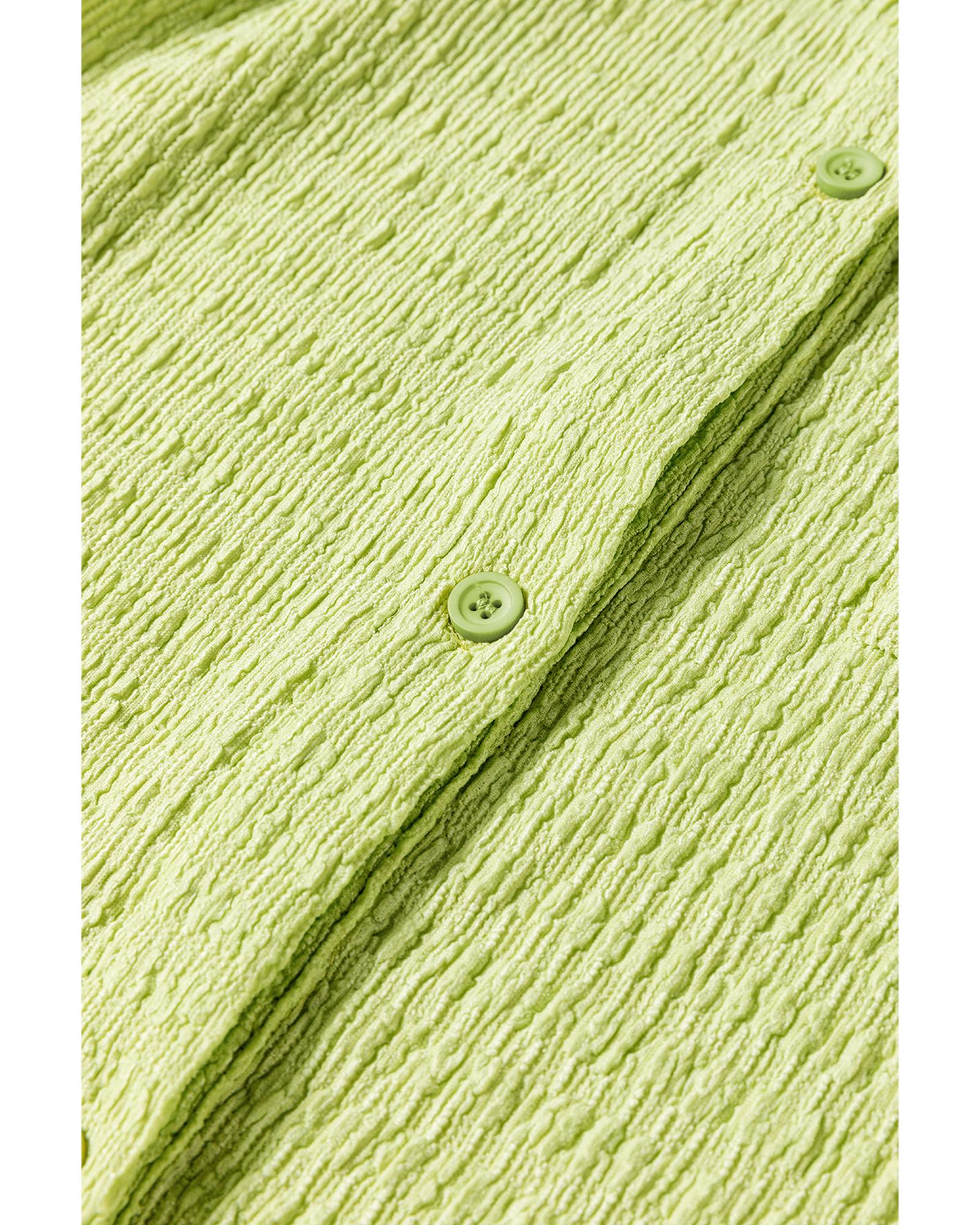 Meadow Mist Green Textured Short Sleeve Patched Pocket Buttoned Shirt Romper – L