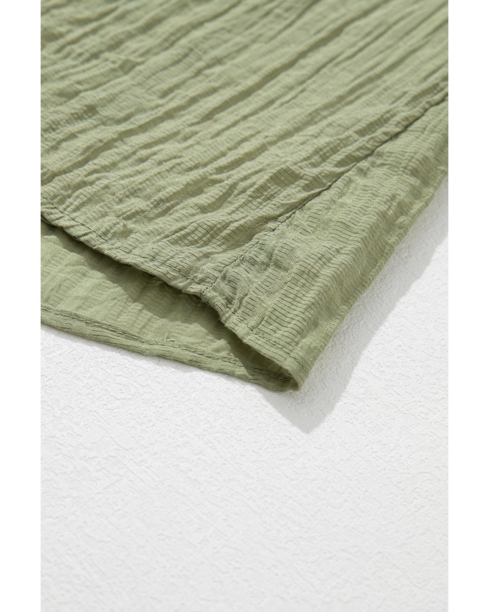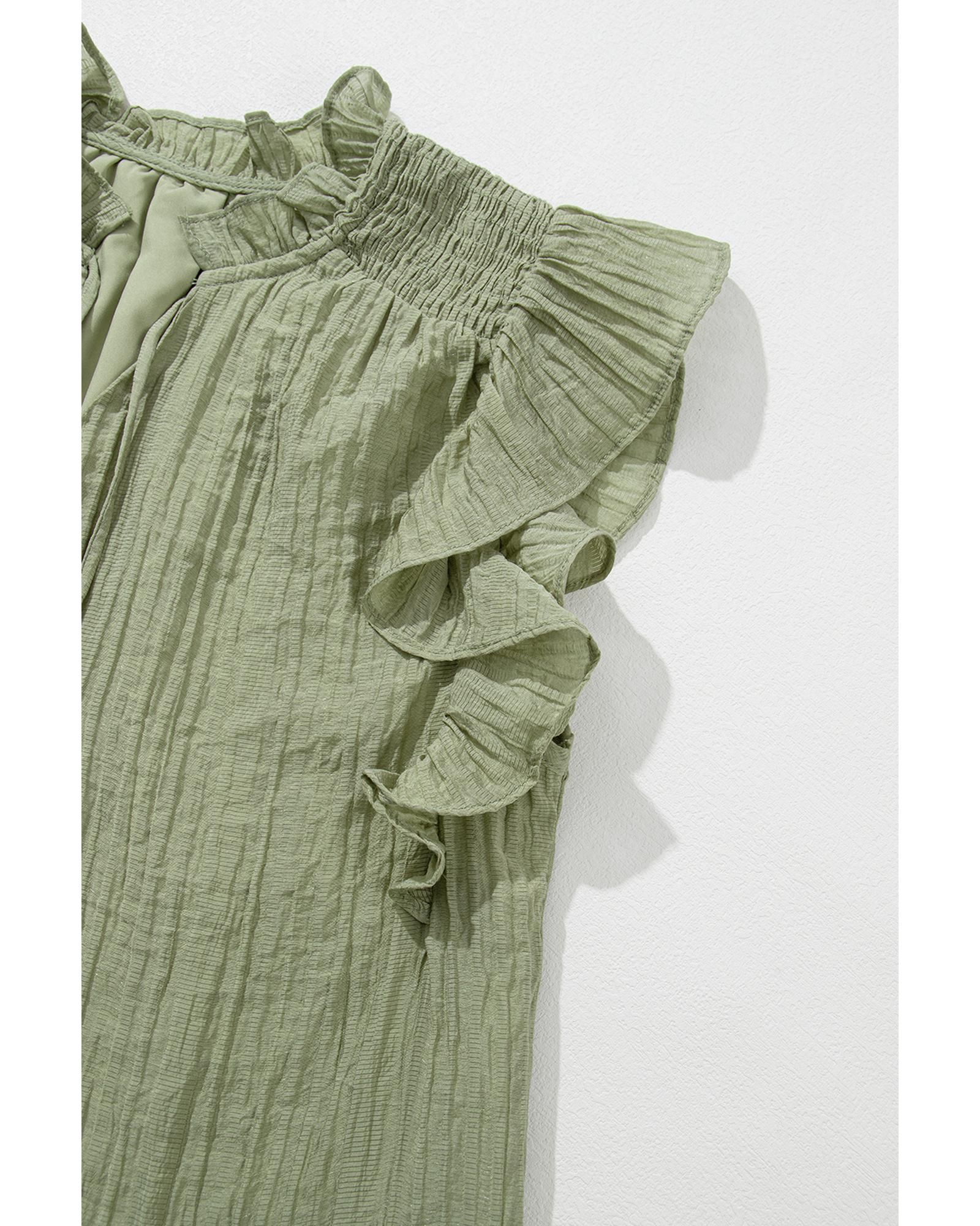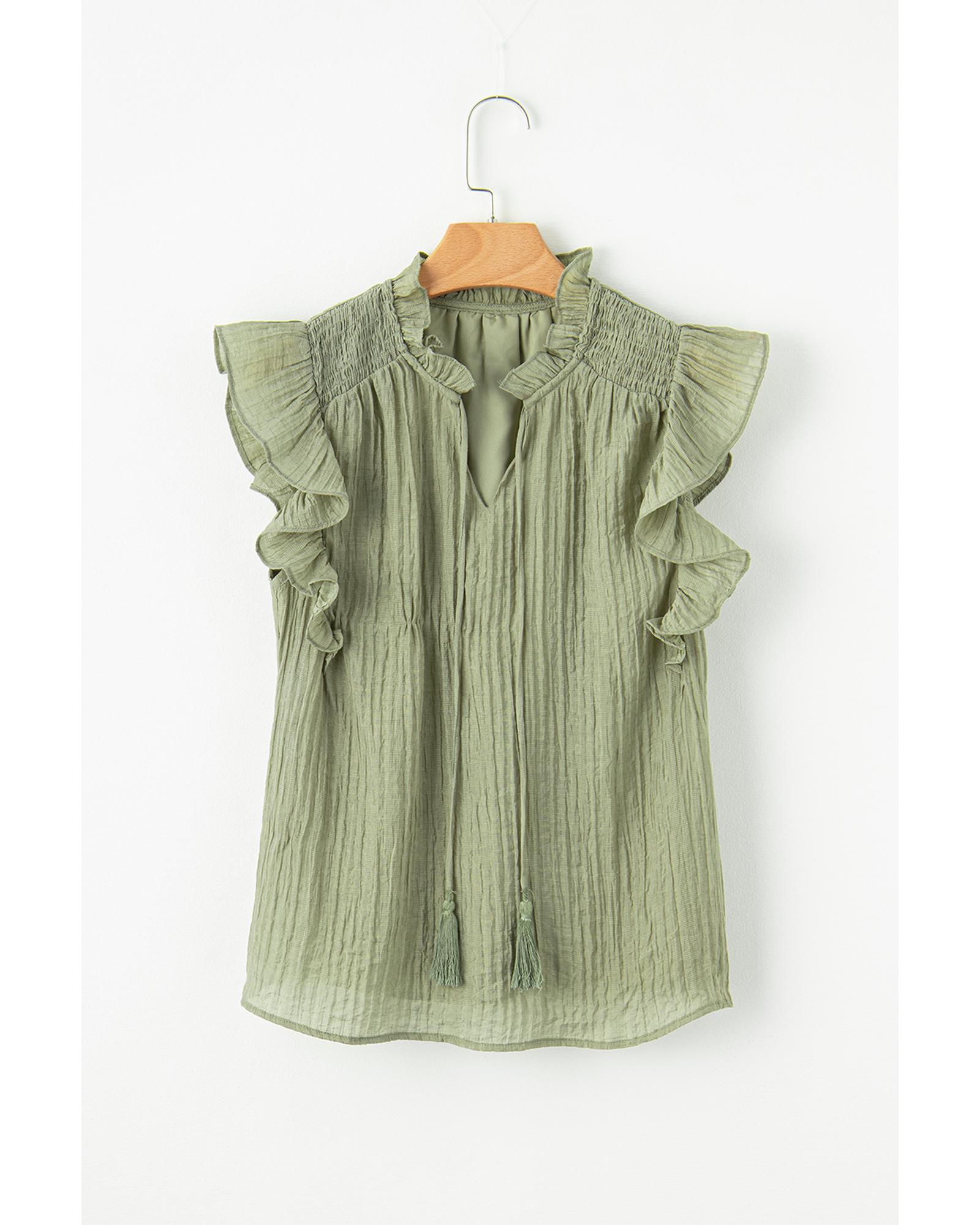 - Trendy and popular Meadow Mist Green V Neck Flutter Sleeve Textured Blouse