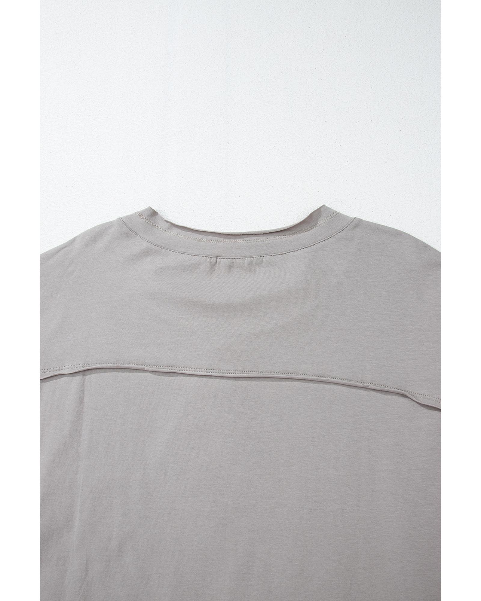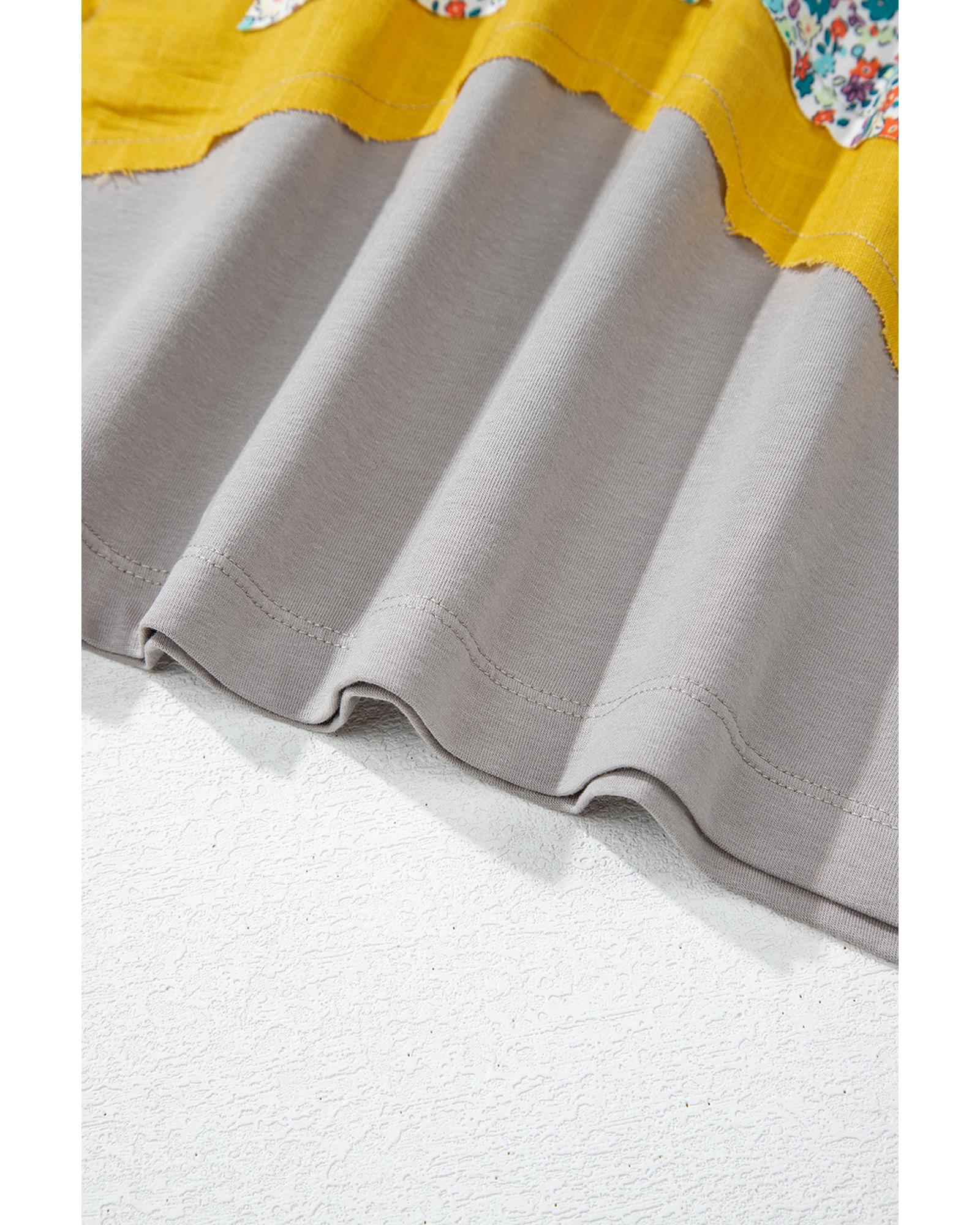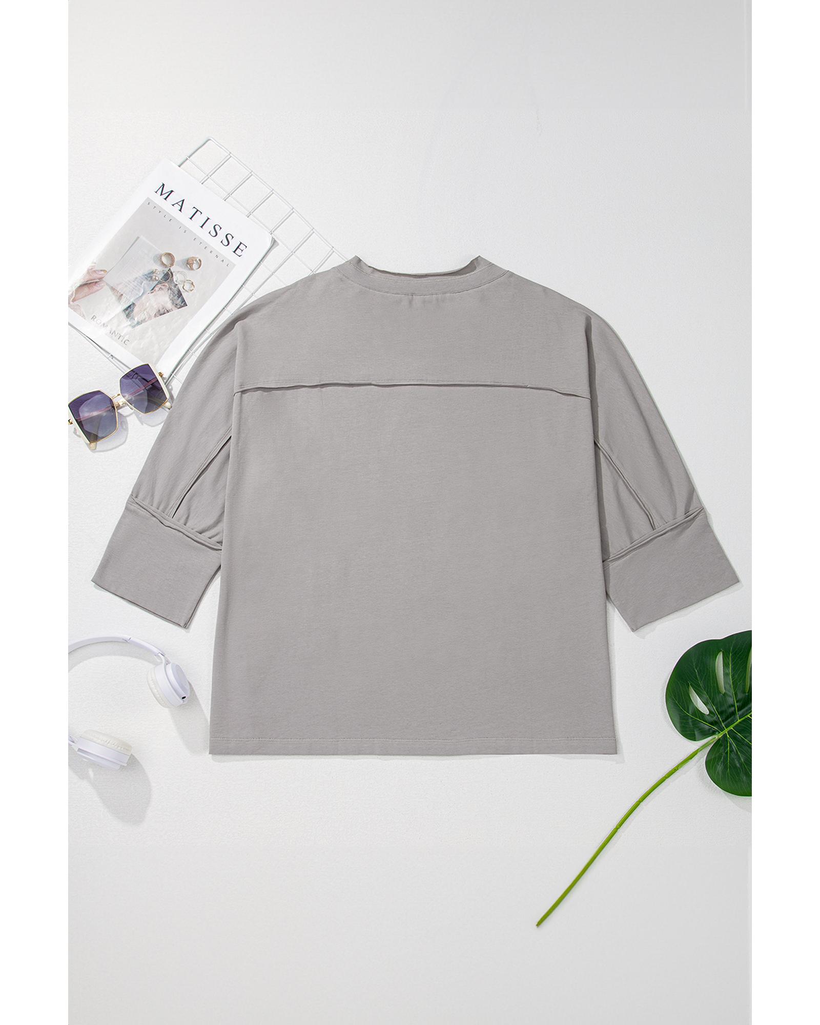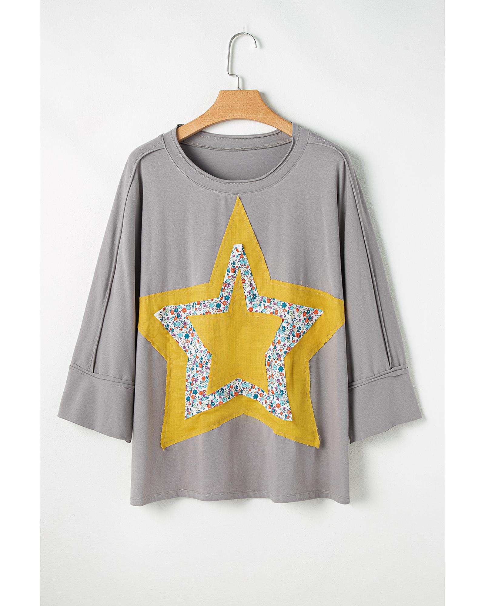 Medium Grey Floral Star Patched Pattern 3/4 Sleeve Plus Size Top – 1X