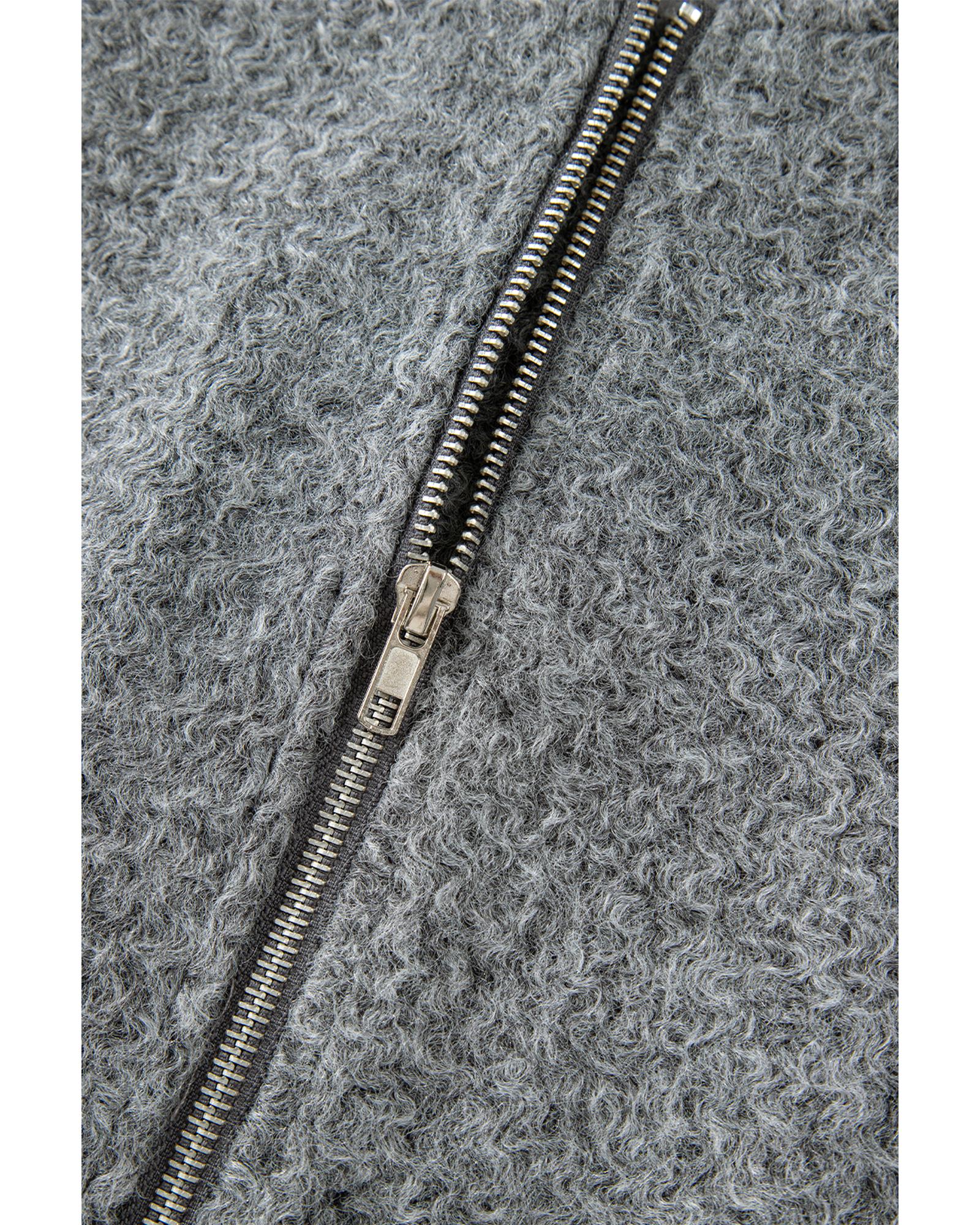 Medium Grey Fuzzy Zip Up Pocketed Sleeve Jacket – XL