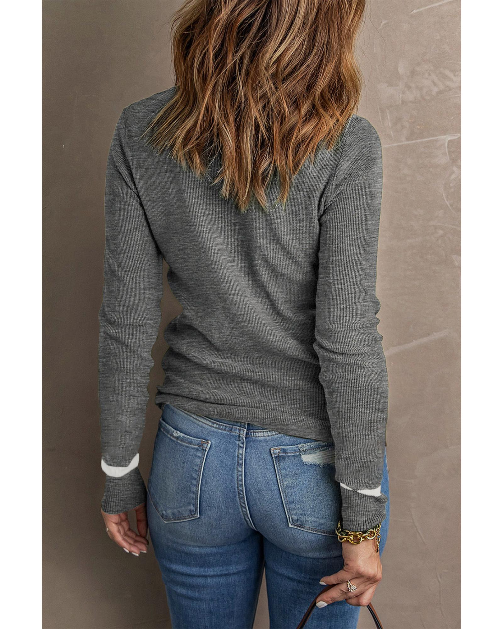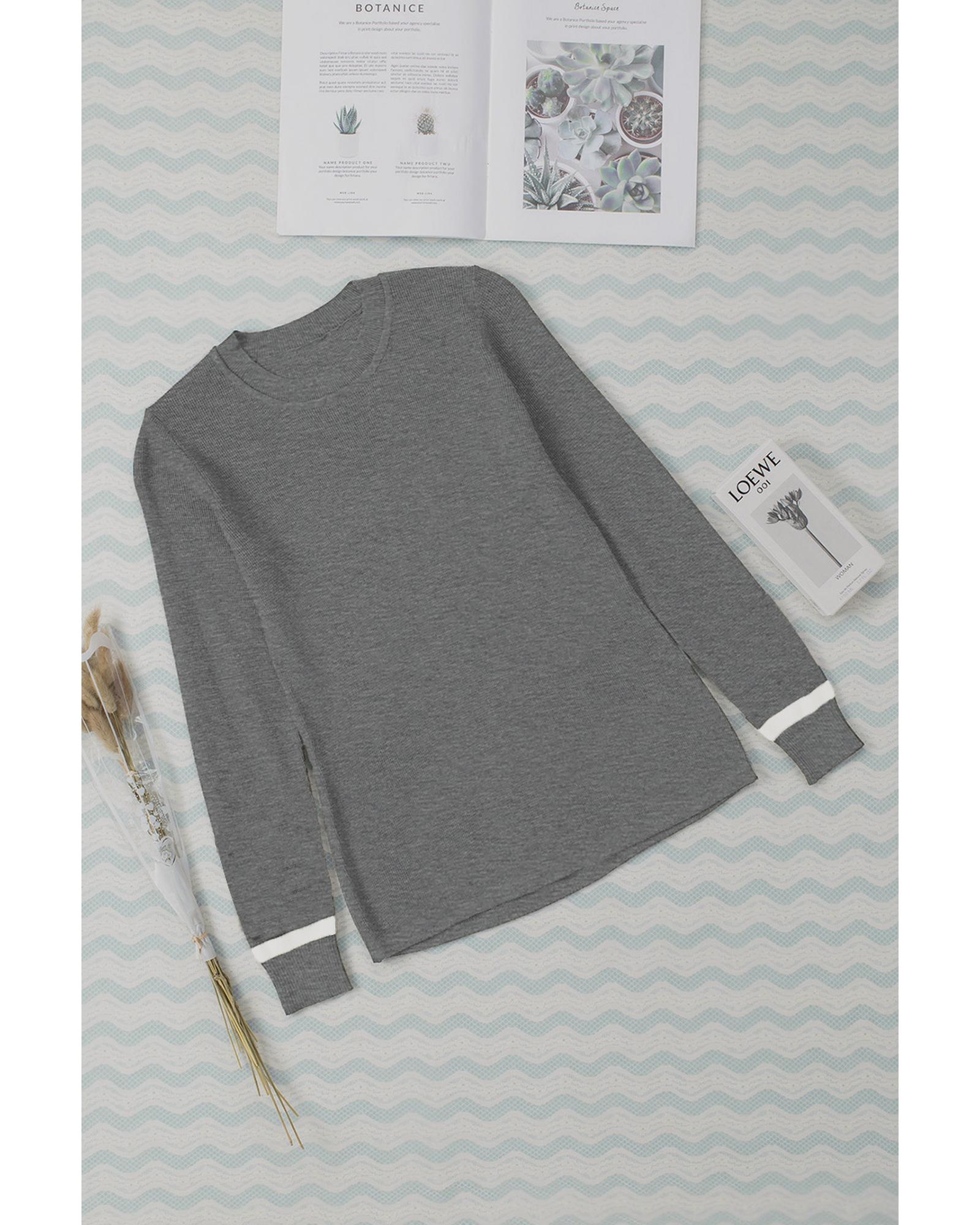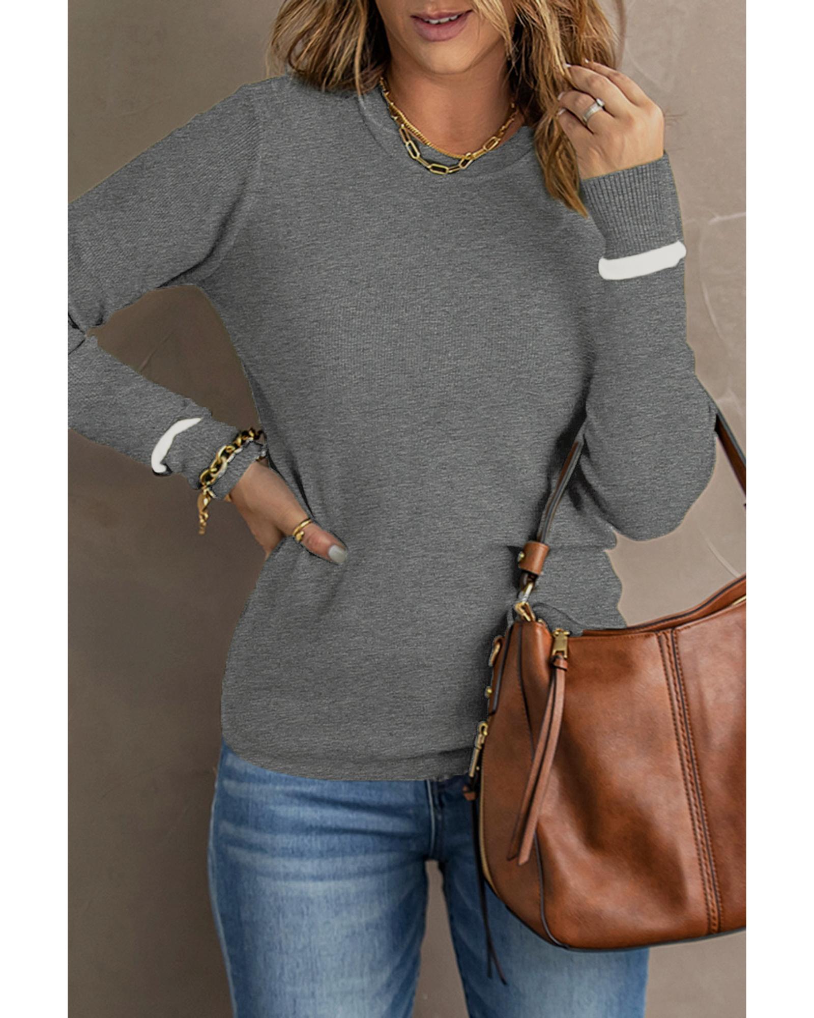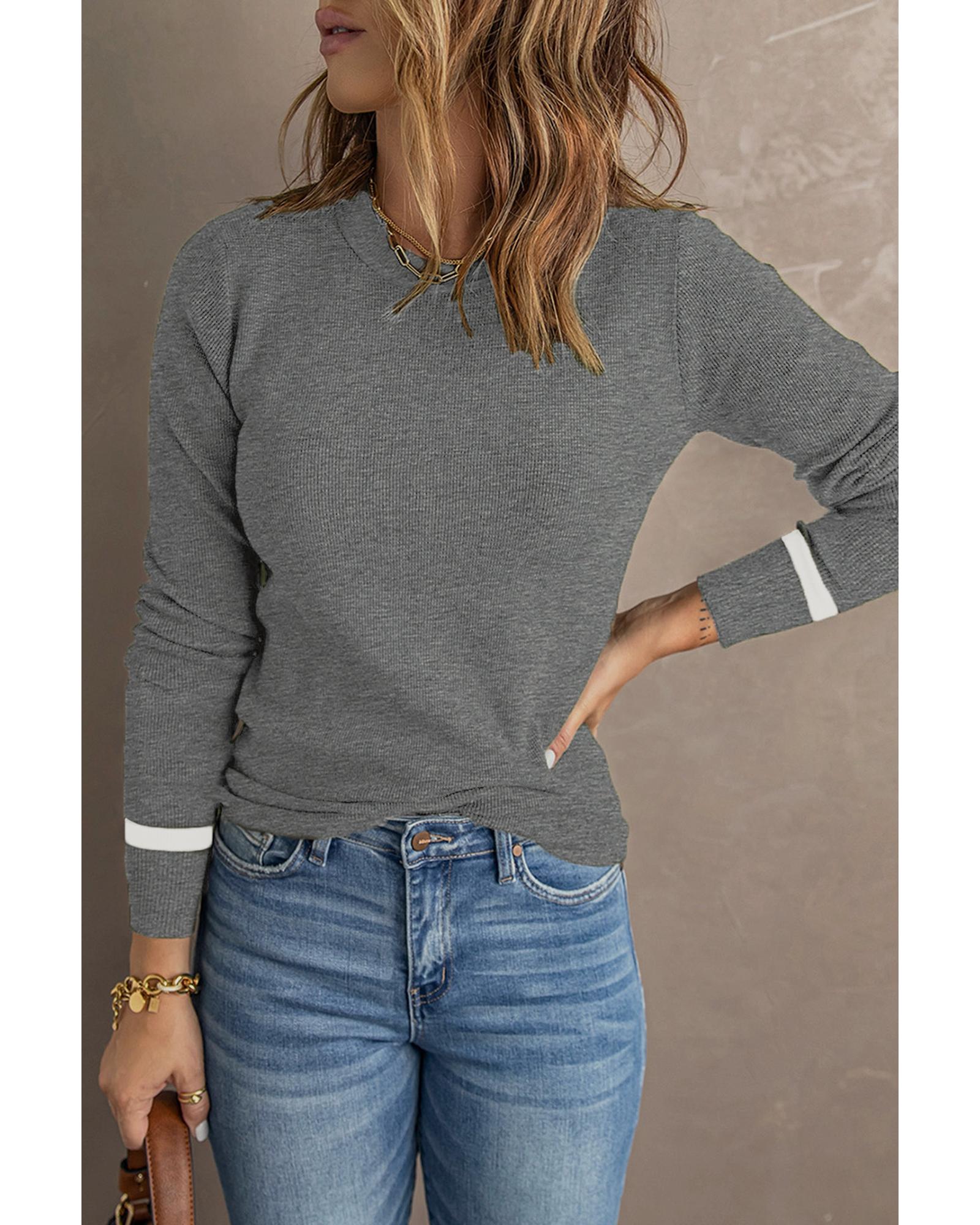 Medium Grey Ribbed Trim Crew Neck Long Sleeve Sweater – XL