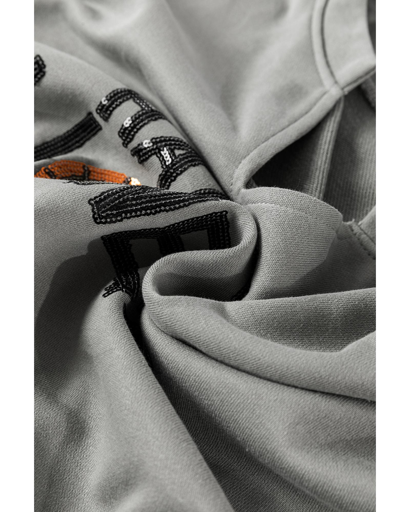 Medium Grey Sequin Happy Halloween Graphic Notched Neck Long Sleeve Loose Top – 2XL