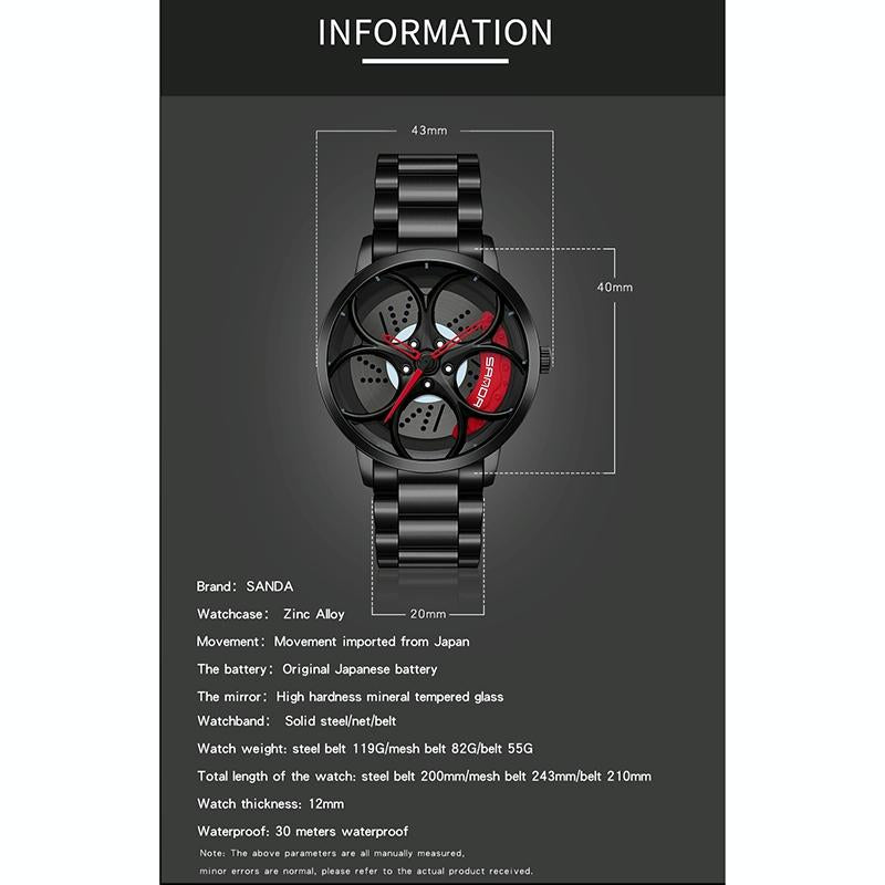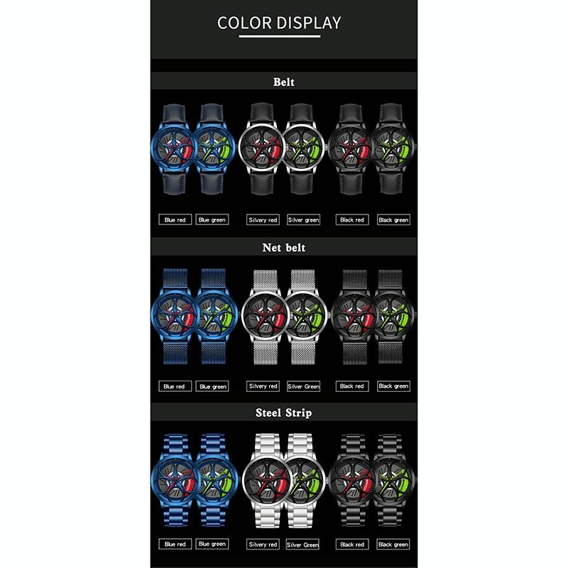• 1 x 1070 3D Oval Hollow Out Wheel Non-Rotatable Dial Quartz Watch For Men Mesh Belt