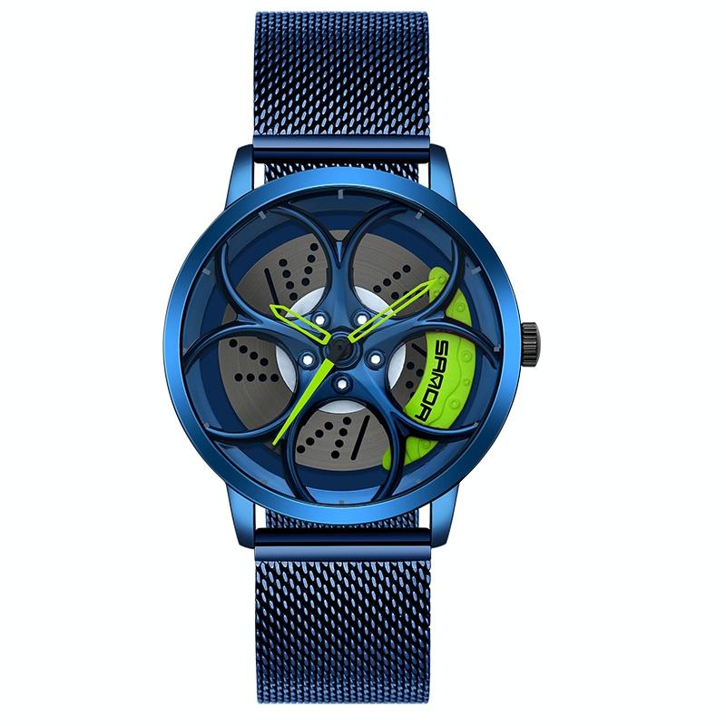 Men Mesh Belt Quartz Watch with 3d Oval Hollow out Wheel – Black Green