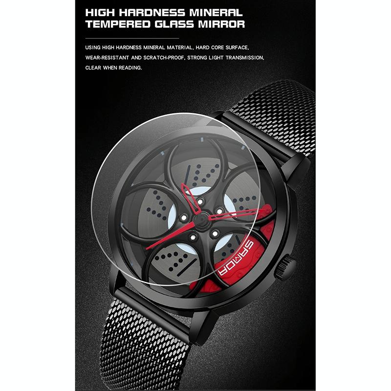 Men Mesh Belt Quartz Watch with 3d Oval Hollow out Wheel – Blue Red
