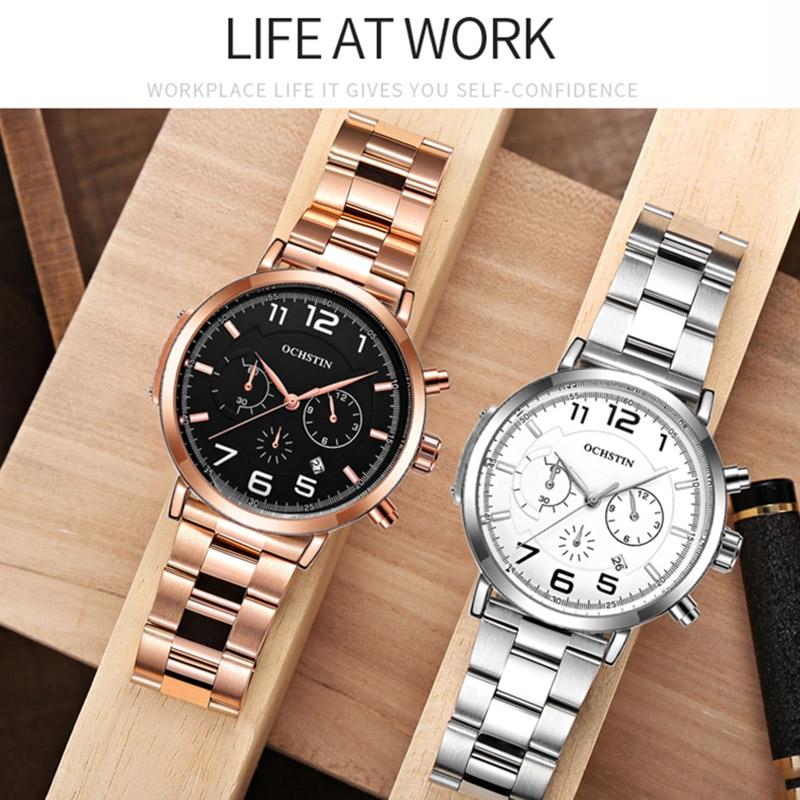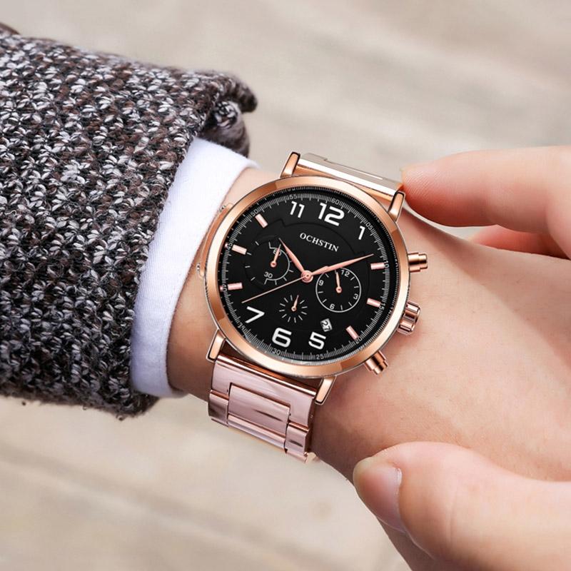 Men Multifunction Steel Quartz Watch with Steel Strap – Rose Gold Black